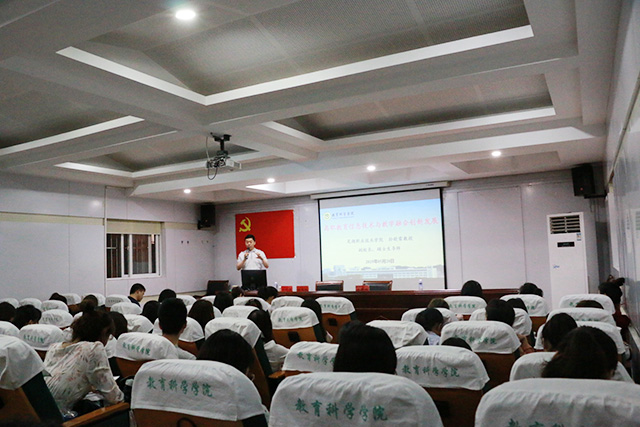 本网讯(文/刘媛媛 图/朱瑞)5月28日下午,芜湖职业技术学院副校长、教授孙晓雷应邀在我院三楼学术交流中心作了题为“高职院校信息技术与教学融合创新”的学术报告。报告由我院科研与研究生工作分管院长聂竹明主持,教育学相关专业师生到场学习。