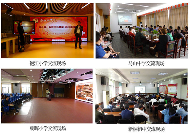 考察团一行先后深入走访了绍兴市袍江小学、马山中学、萧山区朝晖小学以及新桐初级中学4所当地从镇到区级变化,从规模较小到形成当地品牌的特色学校。考察中本着“一听二看三交流”模式,听校谈如何创建,看学校特色现场,交流创建心得体会,亲身感受名校创建给学校带来的变化。