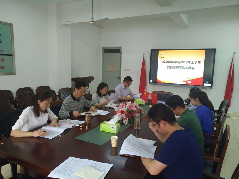 本网讯(教科院 余露)4月25日,教育科学学院组织召开学生支部书记会议,布置学院2019年上半年党员发展工作。校党委组织部正处级组织员胡培亮、院党委副书记张如华出席会议,党委秘书袁黎平、各学生支部书记参加会议。会议由院党委书记方泓主持。