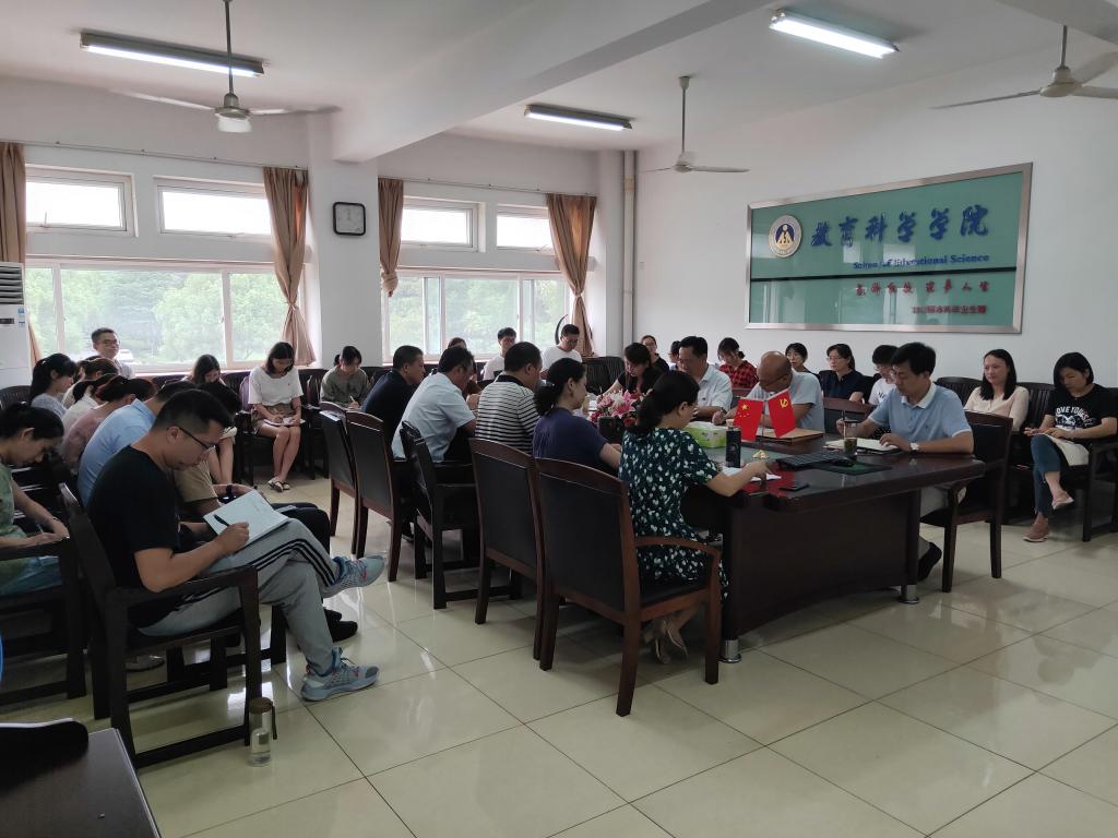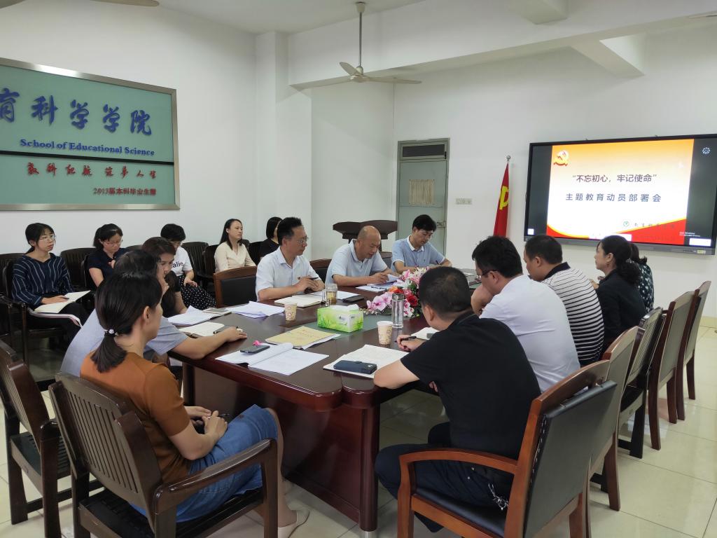 胡培亮组长在指导讲话中指出,开展好主题教育要提高政治站位,深化思想认识;要聚焦根本任务,把握总体要求;要突出重点对象,抓住“关键少数”;要坚持问题导向,增强整改成效;要加强组织领导,推动任务落实。他要求教育科学学院党委要切实履行职责,坚持把中央、省委和学校党委的要求落实到每个支部、每名党员。