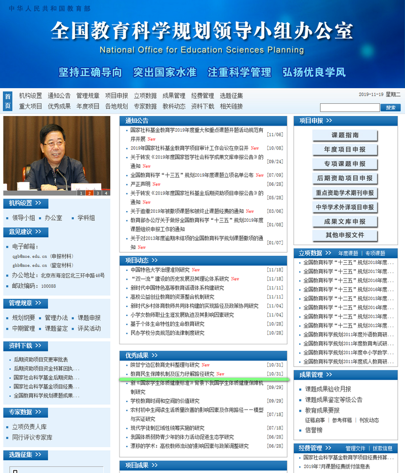 本网讯(校科研处 教科院)近日,学院阮成武教授主持的2014年度国家社科基金教育学项目“教育民生保障机制及压力纾解路径研究”(项目批准号:BFA140043),顺利通过结项验收,结项等级被评为“良好”。该成果入选全国教育科学规划领导小组办公室网站优秀成果栏目。