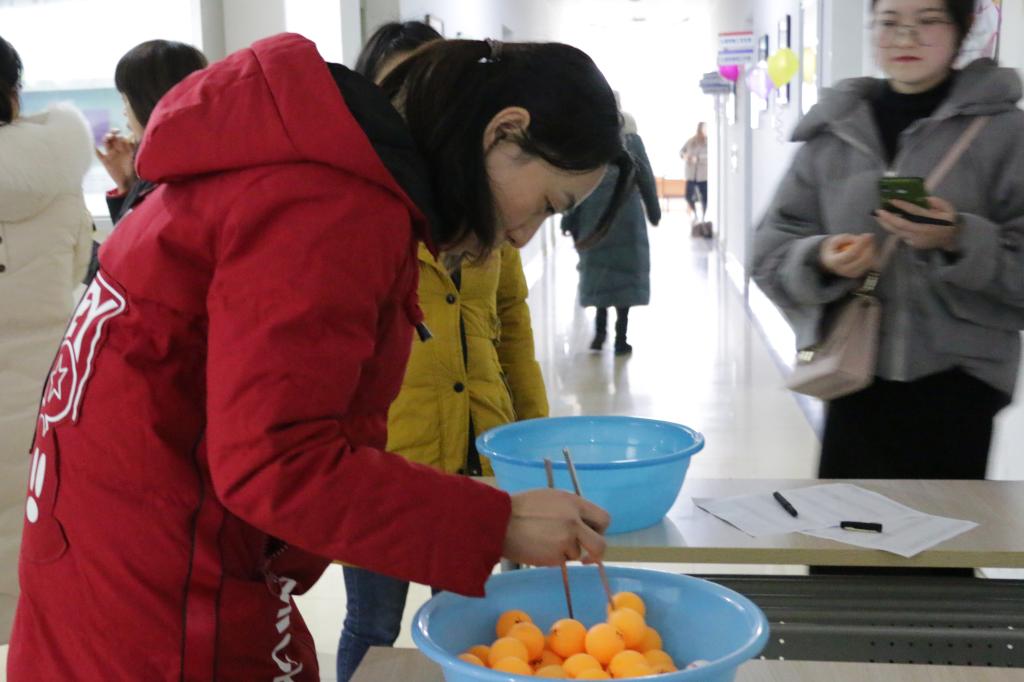 DIY口红同时开始的还有学院工会组织的其他游艺项目,各种游艺活动吸引了到场的每一位老师的关注,为现场增添了浓浓的年味。游戏的欢快让老师们仿佛回到了童年,让大家尽情地放松了一把。套圈、通俗桥牌、筷子夹乒乓球、定点投标、足球射门等游戏,集趣味与技巧为一体,大家饶有兴致的参加每一项游戏,呐喊声、加油声、鼓掌声充满整个现场,欢乐、温馨、和谐成了贯穿整个游艺活动的主旋律。游艺活动使教职工们放松了身心,增强了教职工集体的凝聚力和荣誉感,有助于大家在工作中劲往一处使,汇智聚力,在各自的岗位上不断为学院发展贡献力量。