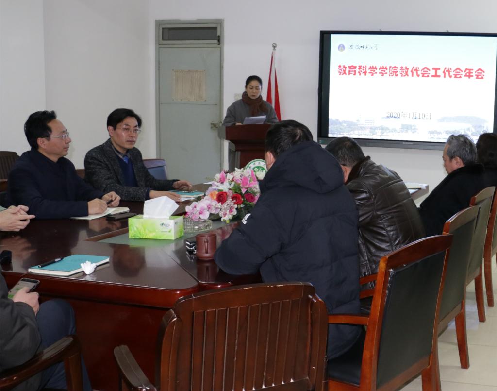 本网讯(教科院 黄引娣/文 刘和海/图)1月10日下午,学院在三楼308会议室召开2019年教代会、工代会年会。学院教代会和工代会代表参加了本次会议,会议由学院党委书记方泓主持。