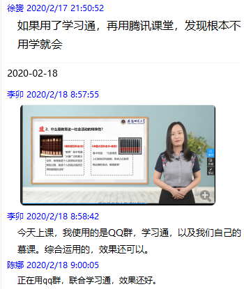 教学监控网络化全覆盖,全面收集教学中出现的问题及时进行反馈。一是教学办组建了由各班班长参加的微信群,同学们可以在群里反映各课程的线上授课准备情况、授课过程中出现的问题等,由教学办汇总进行研判,分头交给教务处和超星技术人员处理。二是通过各专业负责人了解各专业教师的授课情况、教学建议等,及时处理并反馈,确保线上教学工作顺利进行。另外,学院将于近期针对个别技术困难教师开展线上授课的技术辅导工作。三是严格教学微信群、QQ群的管理,落实群主管理责任,邀请辅导员入群协助管理,严格核实所有成员身份,严格落实实名制度,严格入群批准验证,杜绝陌生人随意入群现象。