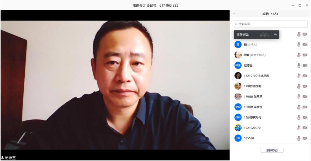 本网讯(教科院 游涓娟)为充分激发我院研究生居家学习的积极性和自主性,丰富我院研究生的专业知识,进一步提高研究生的专业素养。安徽royal皇家88平台将在毕业答辩季,依托腾讯会议平台开展线上学术讲座的系列活动。5月30日上午,全国教学论专业委员会常务理事、天津师范大学博士生导师纪德奎教授应我院邀请,在腾讯会议平台为我院师生带来一场题为“高质量教育发展与高素质教师培育”的线上学术讲座,这是我院师生“相聚云端、共同研学”的首场学术讲座。讲座由我院课程与教学论硕士学位点负责人杨晓奇教授主持,我院教师、教育学专业研究生共计140余人参与了本次线上讲座活动。