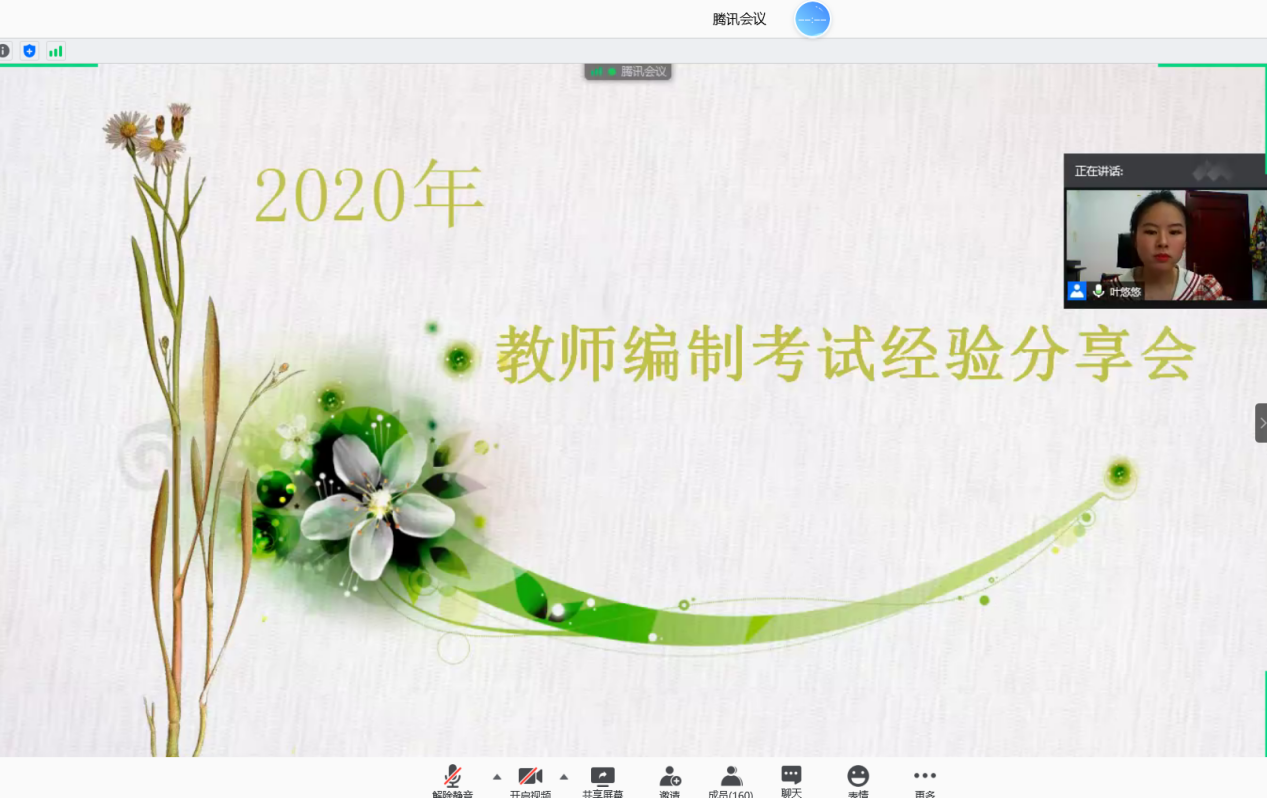 7月25日下午14:00,学院通过腾讯会议开展2020届毕业研究生中小学教师编制考试备考经验分享会。本次活动特邀四位优秀院友:17级非全心理健康专业研究生张云,17级非全小学教育专业研究生陈萍,17级非全教育管理专业研究生李娇,18级小学教育专业研究生叶悠悠。我院副院长聂竹明、研究生管理办公室叶方舟及170余名硕士研究生在线参与,活动由19级教育技术学专业研究生姜惠玲主持。聂院长强调要学习贯彻习近平总书记的回信精神,把落实回信精神同做好毕业生就业“百日冲刺”行动结合起来,确保我院毕业生就业局势总体稳定。强调今年要积极响应国家重大战略,持续拓展多种就业渠道,整合学生就业资源,搭建就业平台;要有针对性地加强毕业生就业帮扶,充分利用校友资源,强化朋辈帮扶,提高毕业生求职能力。