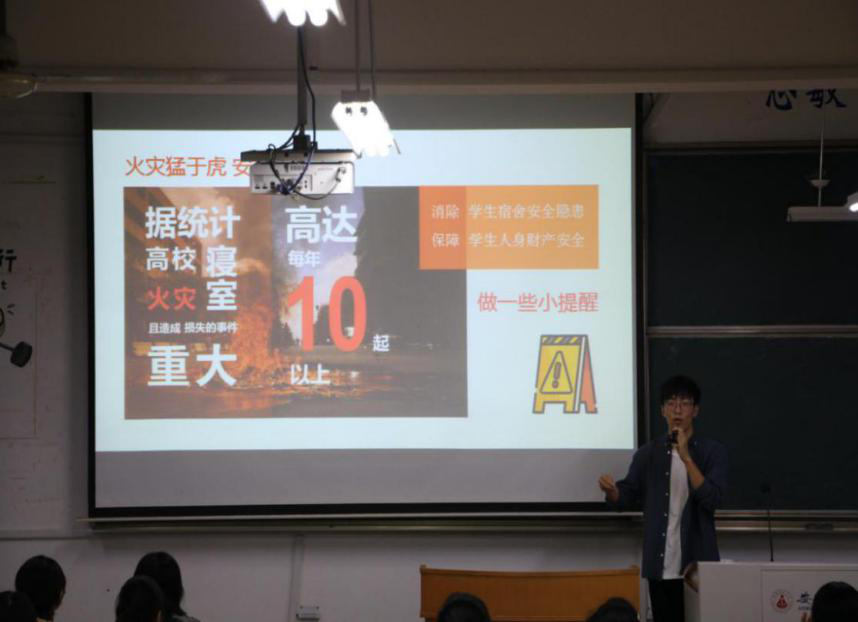 在开学第一次集体班会上,辅导员蔡文以开学当天的一项诈骗案例告诫新生提高警惕意识、预防诈骗、拒绝推销。新老生交流会上,院学生会主席刘玉瑾也以校纪校规为基础,向新生们讲述了大学生在校的安全注意事项。军训期间,为了加强安全教育,学校联合芜湖市第二人民医院,向新生展示了心肺复苏急救办法以及海姆立科式腹部冲击急救法,帮助学生学习更多的急救知识。通过一系列贯穿整个入学教育过程的安全教育,力求提高学生的安全防范意识和自我保护意识,为学生在校安全保驾护航。
