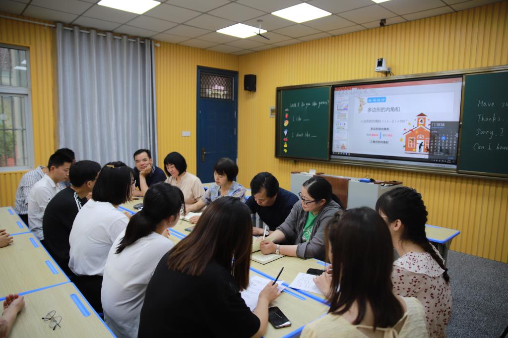 离开龙华小学,城南中心小学校长尹宜彪带领杜凤等人前往城南小学观看实习成果展。参展实习生进行教学展示后,全体观摩人员以及实习生对此次成果展进行探讨点评。杜凤首先对实习地的相关领导表示感谢,并对进行授课的实习生们给予了高度评价。尹宜彪根据自身在数学方面的教学经验对实习生进行评价,肯定他们教学态度的同时也提出了尚存的一些不足。姚运标指出实习生们的教学基本技能通过此次实习得到了显著提升,这与实习基地的培养密不可分。王芳以课堂节奏作为切入点,指出同学们在教学设计以及最终的课堂呈现上还存在些许不足,但对于课堂氛围的把控较为自如。实习生们在会议最后进行了互评环节,以独特的视角对彼此进行评判。