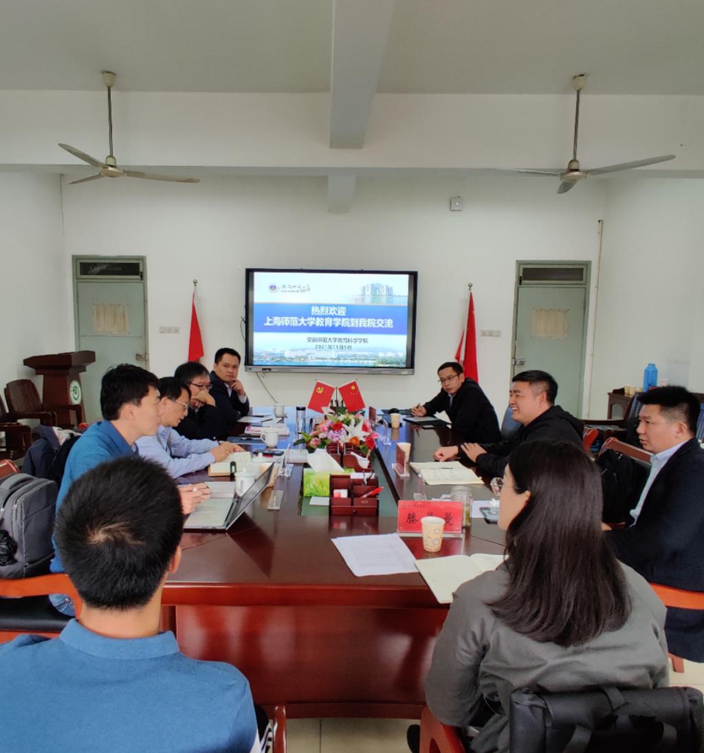 本网讯(教科院)2021年11月5日上午,上海师范大学教育学院教育系主任陈建华教授率夏正江教授、孔令帅教授、王文智副教授一行来我院开展国家级一流本科专业建设经验交流。教育科学院院长李宜江、教育系徐赟、王路曦和滕曼曼老师参加了本次交流会议。此次交流会在教育科学学院308会议室举行。