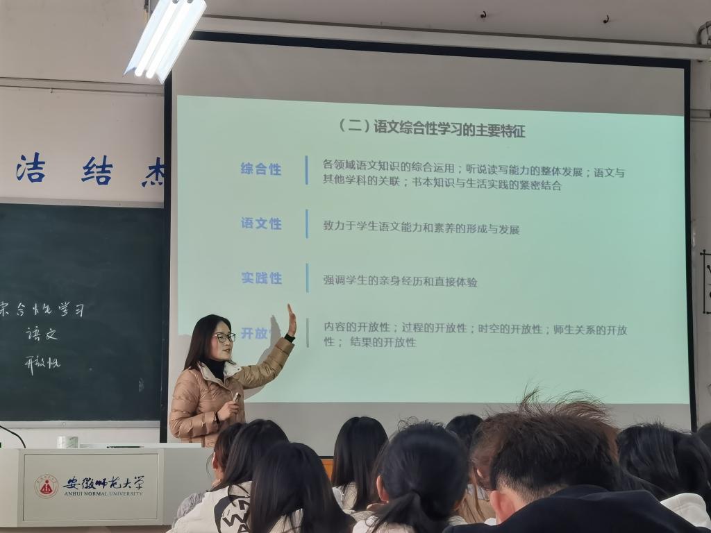 本网讯(教科院 江珊)11月17日上午,我院陈娜老师在田楼8504教室为师生们呈现了一堂精彩的《小学语文教学法》公开课。本节课的教学内容是“综合性学习的教学设计与实施”,授课对象为2019级教育学、小学教育学专业学生。学院领导、学校及学院教学督导专家、教育系全体教师及学院部分中青年教师共同观摩了此次教学公开课。