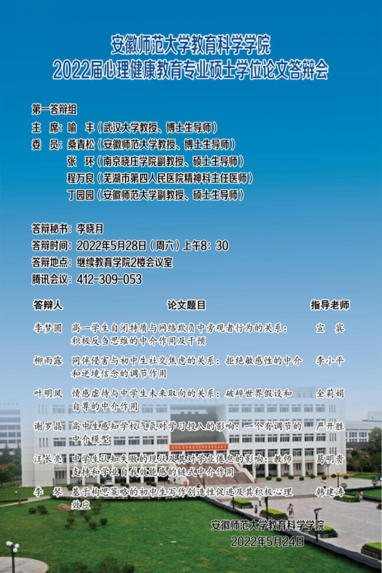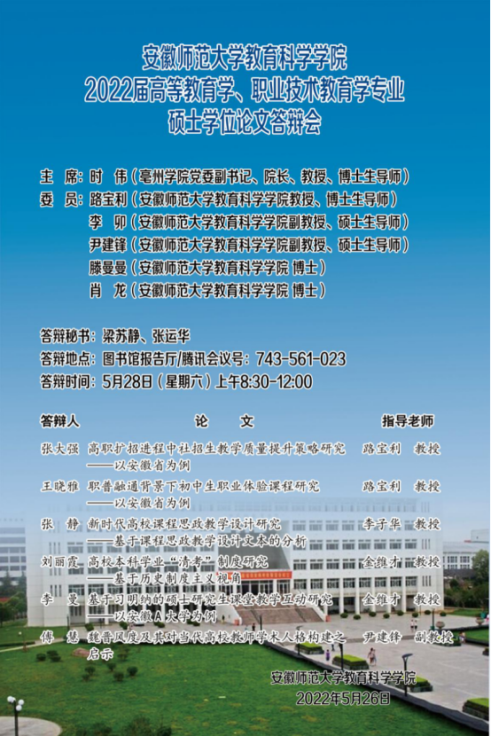 教育科学学院2022年上半年硕士研究生学位论文答辩公告(二)
