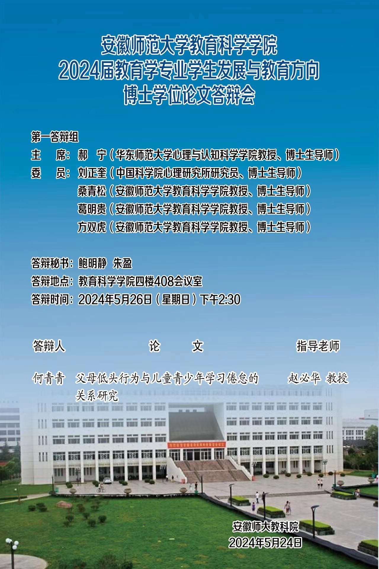教育科学学院2024年上半年博士研究生学位论文答辩公告(一)