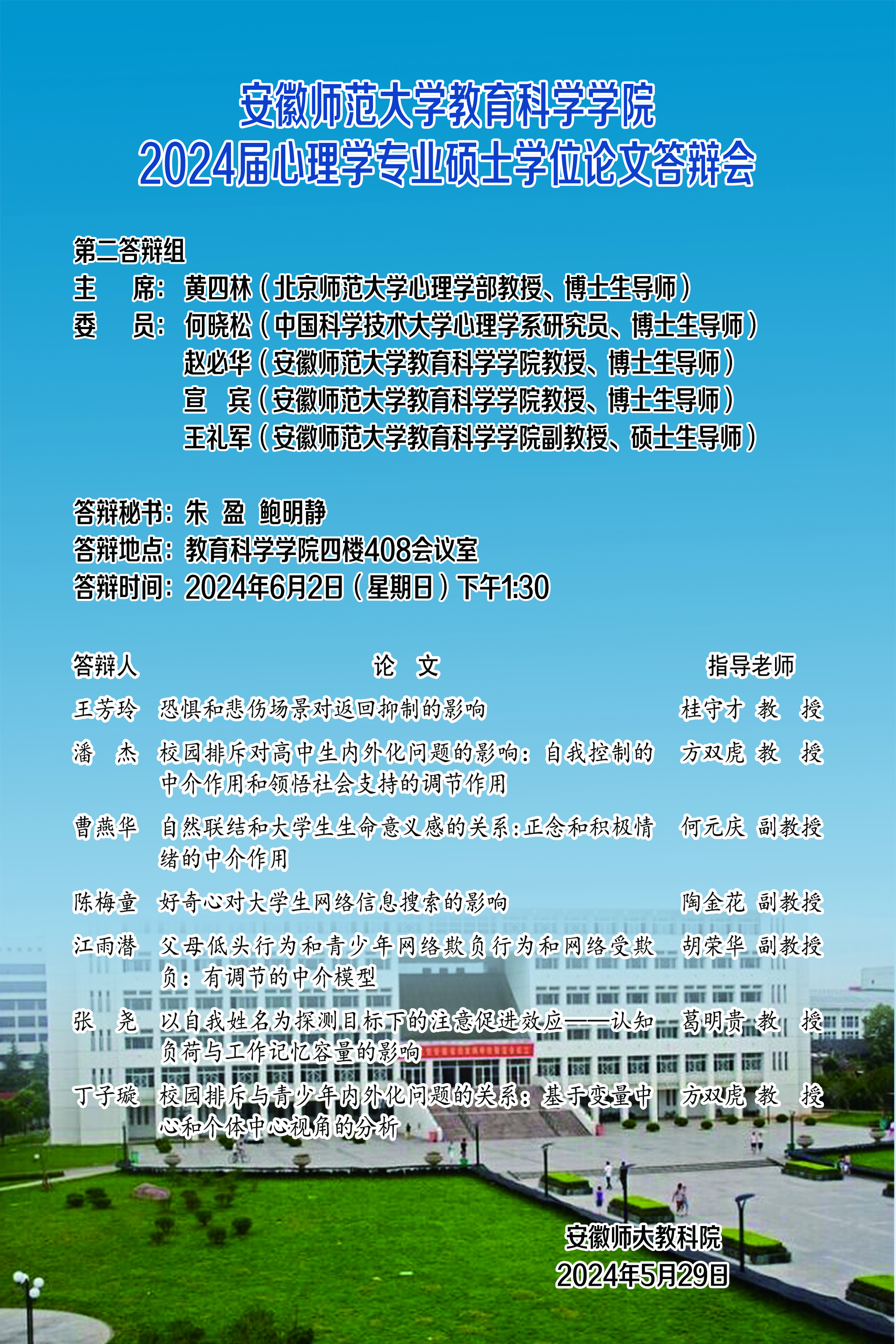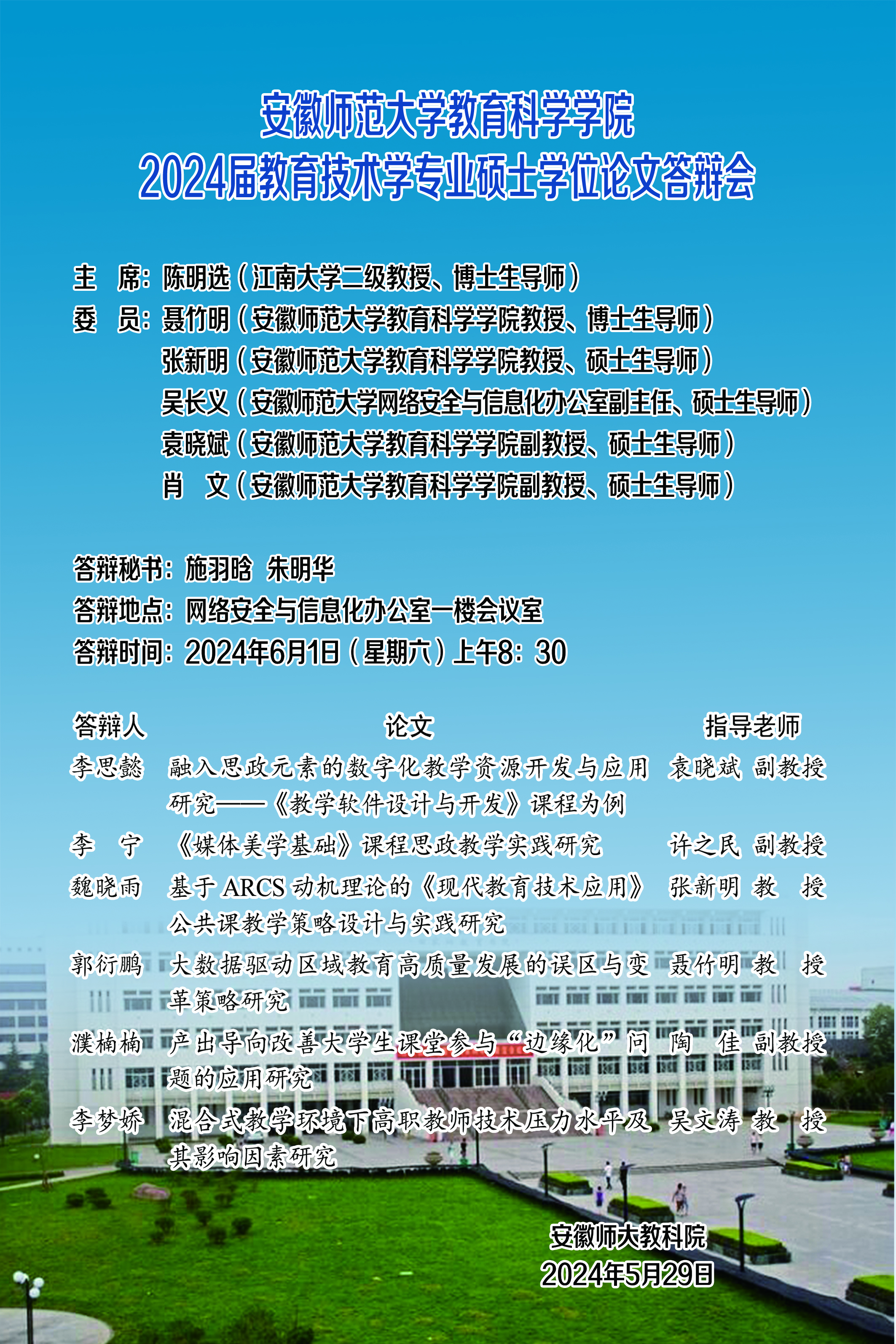 教育科学学院2024年上半年硕士研究生学位论文答辩公告(二)