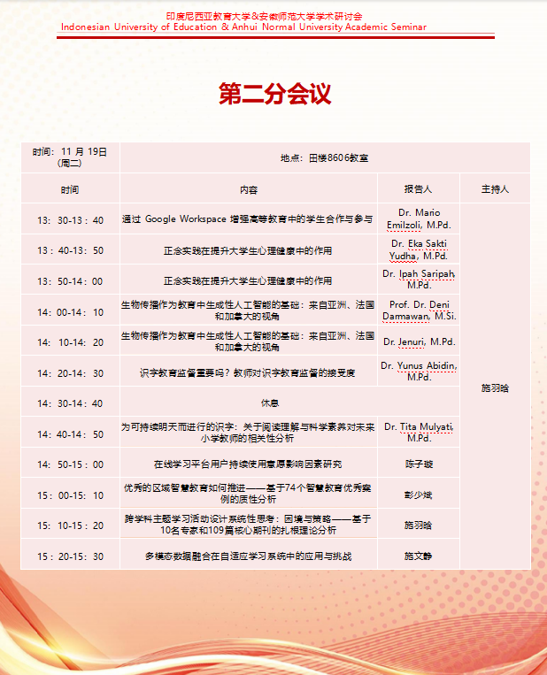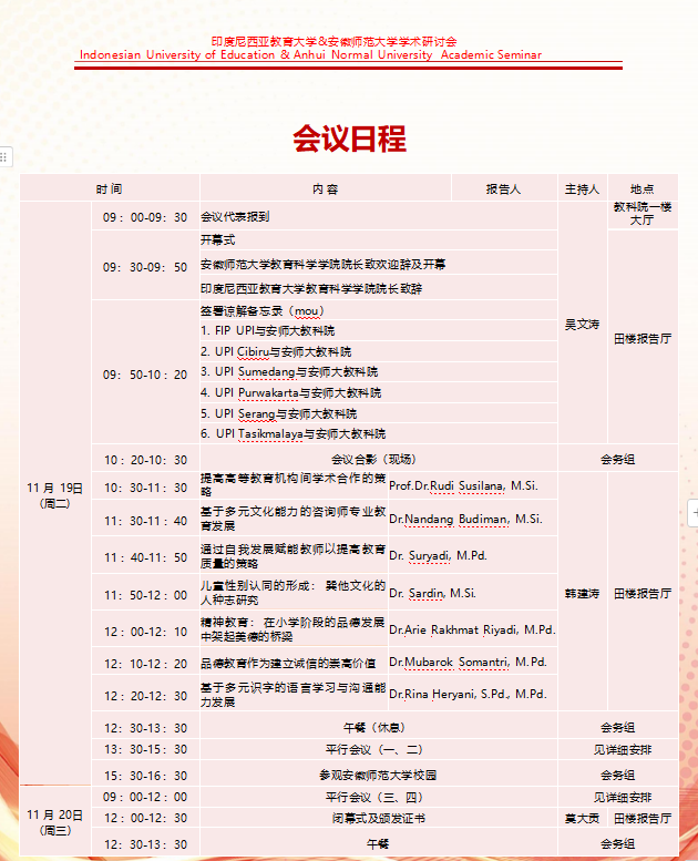 印度尼西亚教育大学与安徽师范大学学术研讨会会议日程