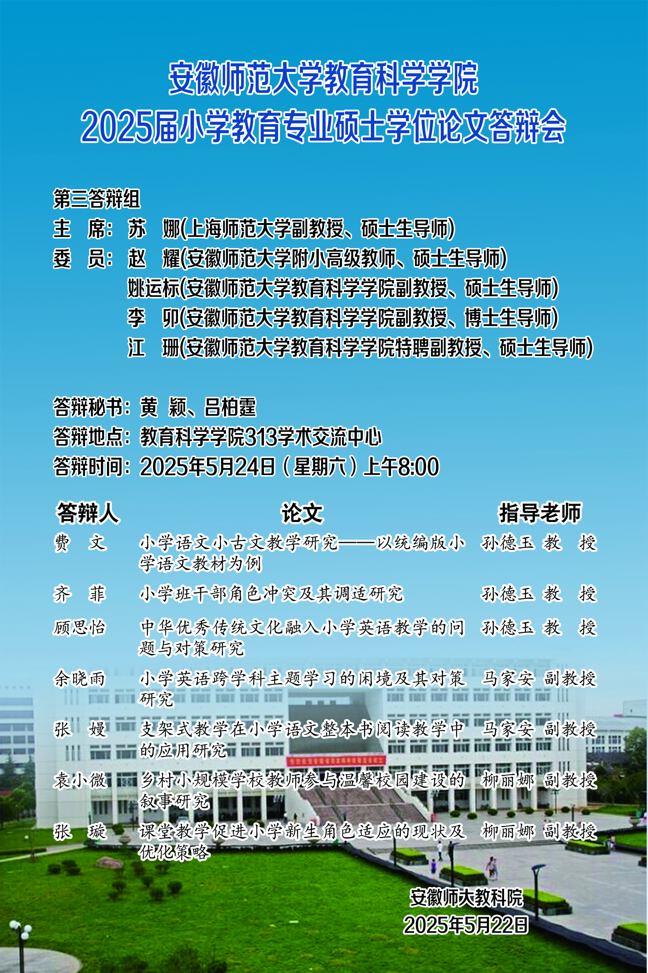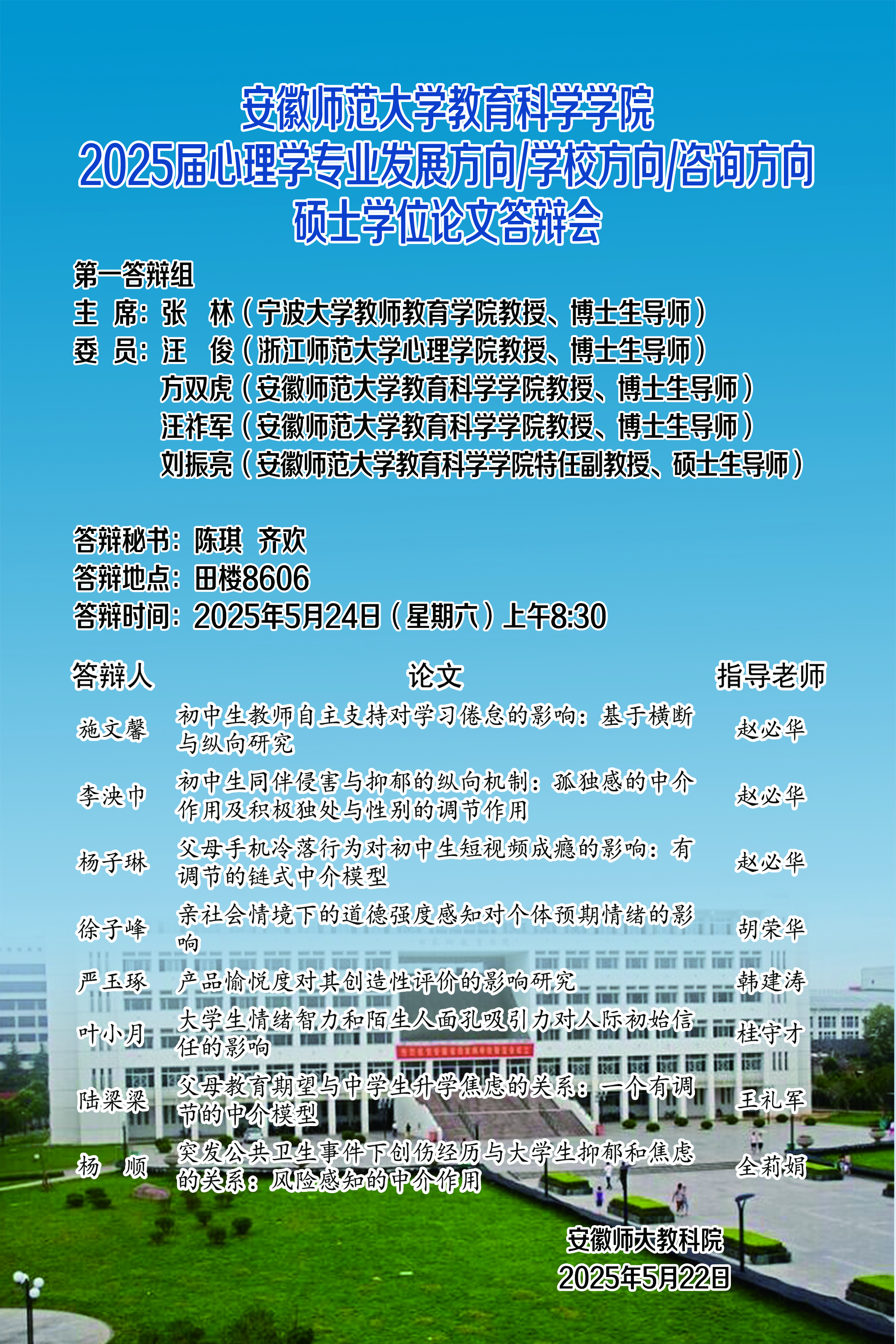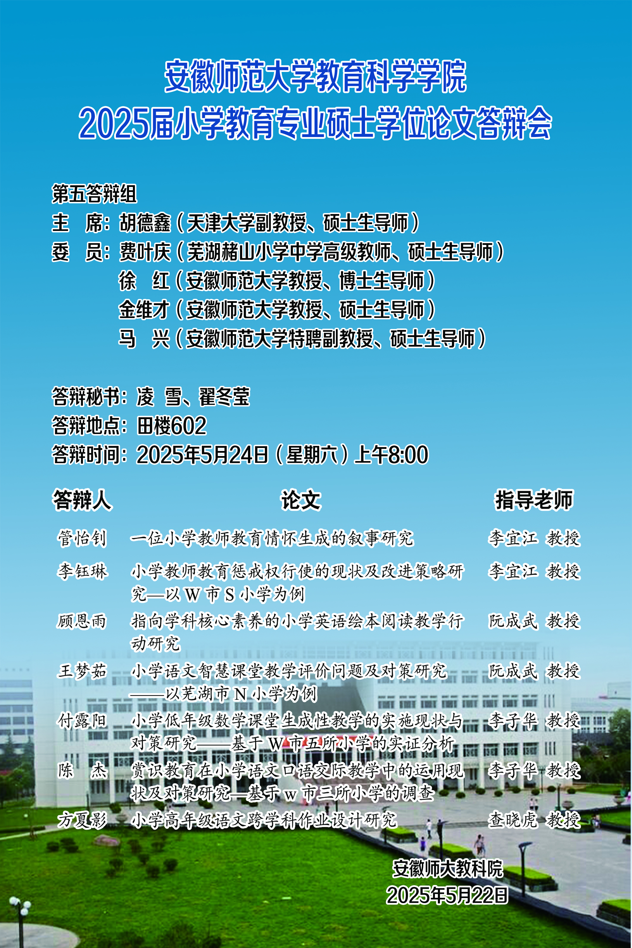 教育科学学院2025年上半年硕士研究生学位论文答辩公告(二)