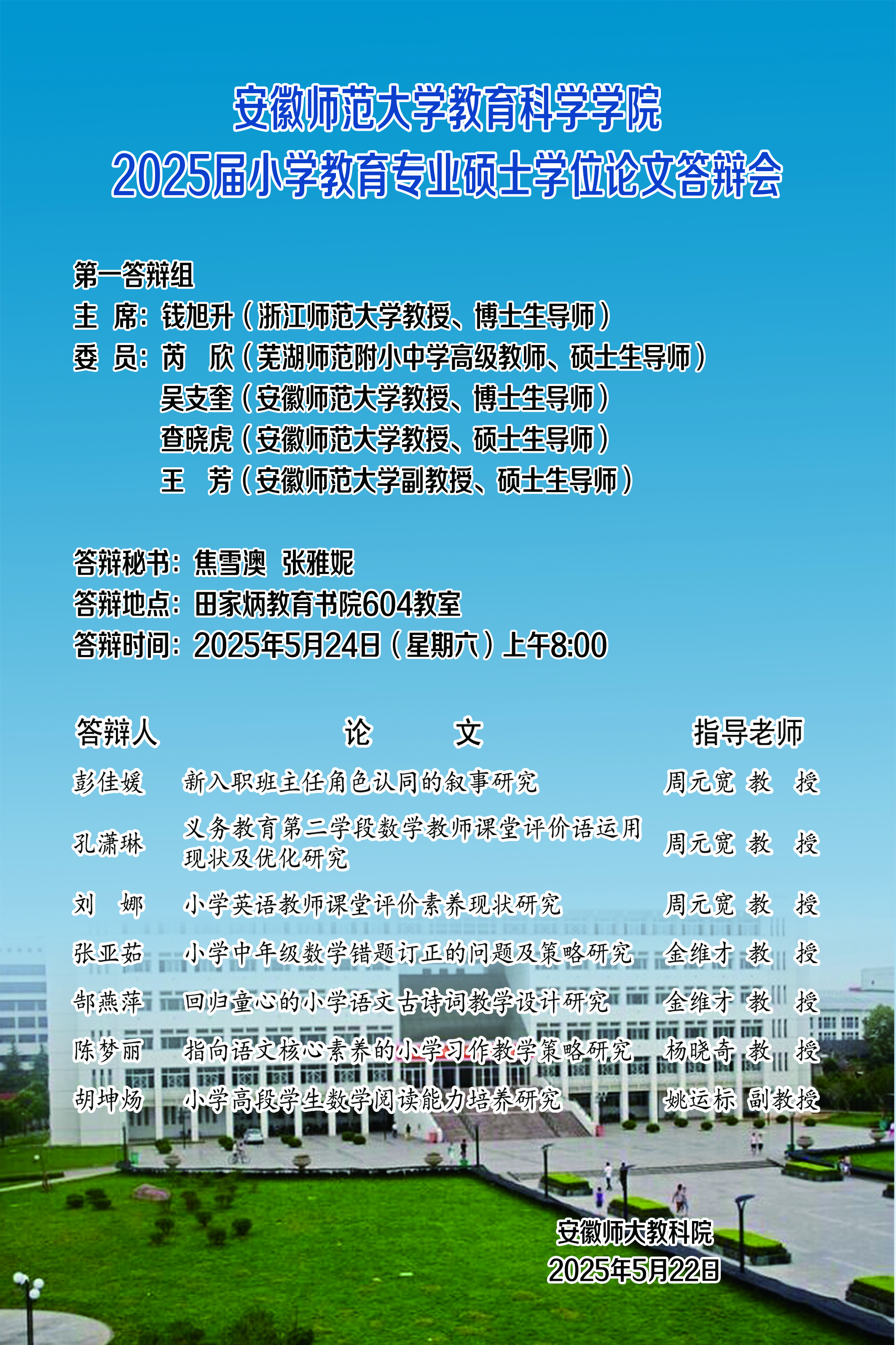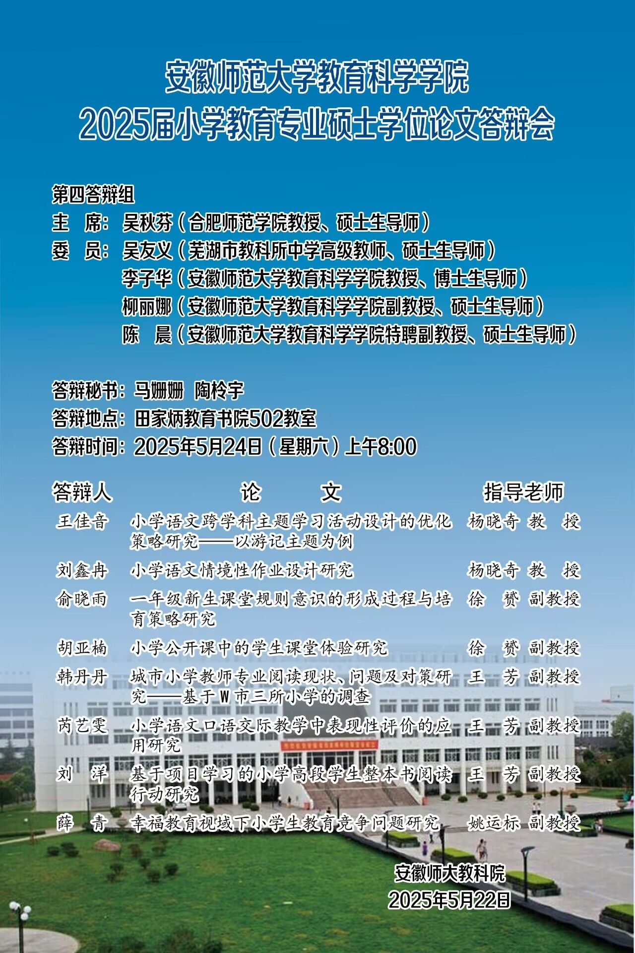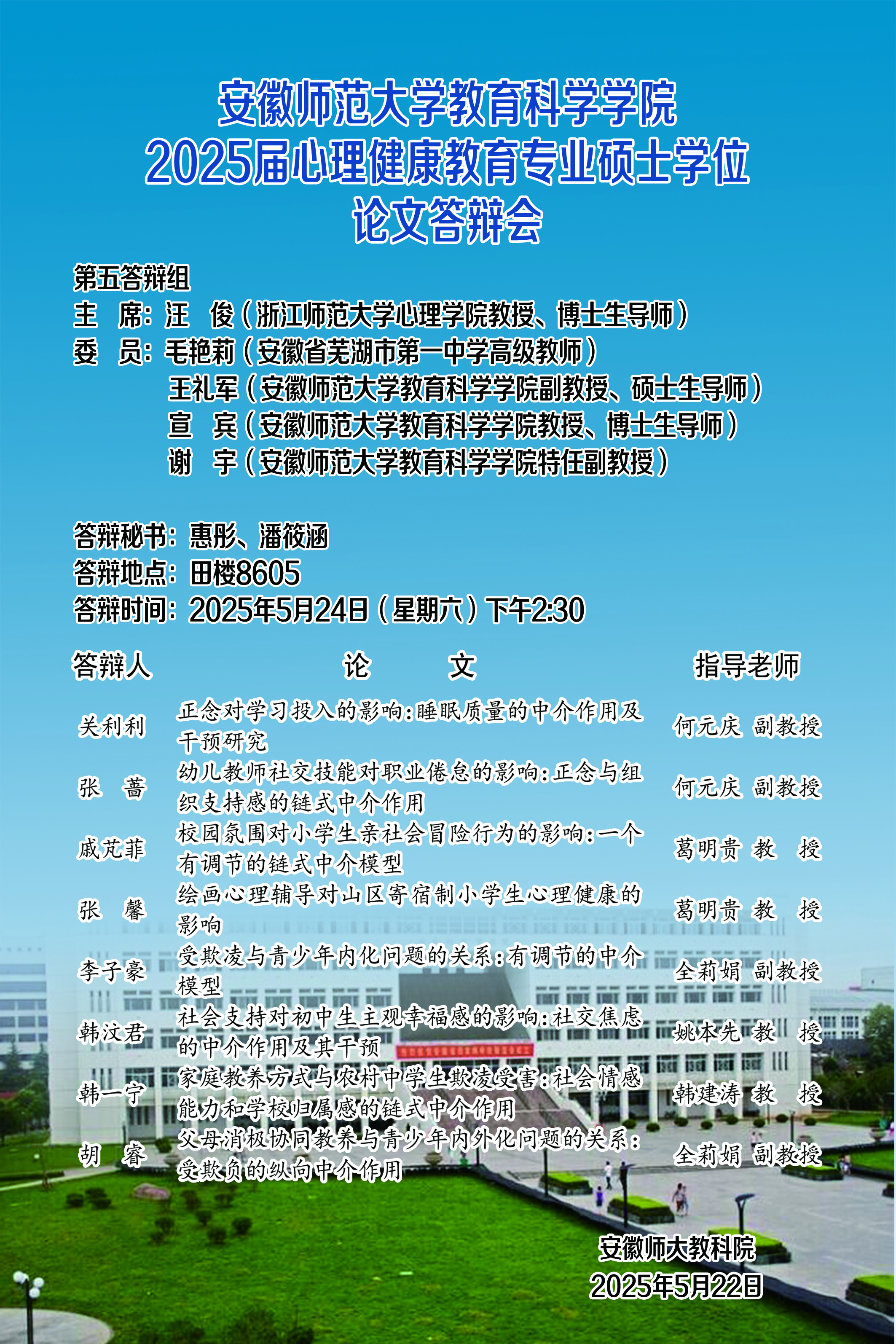 教育科学学院2025年上半年硕士研究生学位论文答辩公告(二)