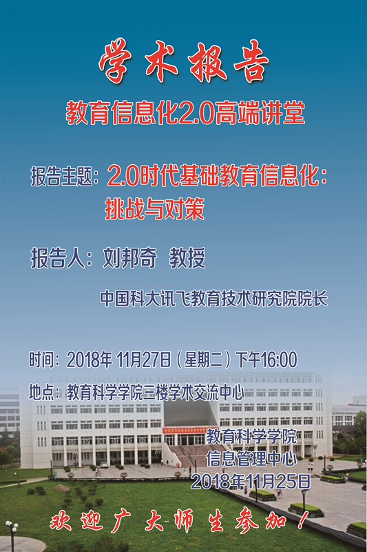 学术报告预告——中国科大讯飞教育技术研究院院长刘邦奇报告