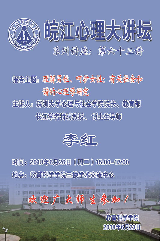 教育科学学院学术报告预告——皖江心理大讲坛第六十三讲