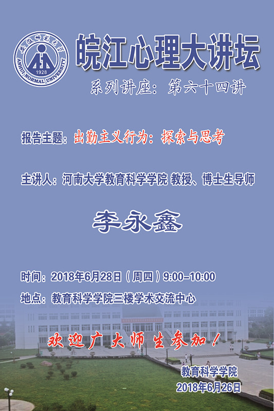教育科学学院学术报告预告——皖江心理大讲坛第64讲