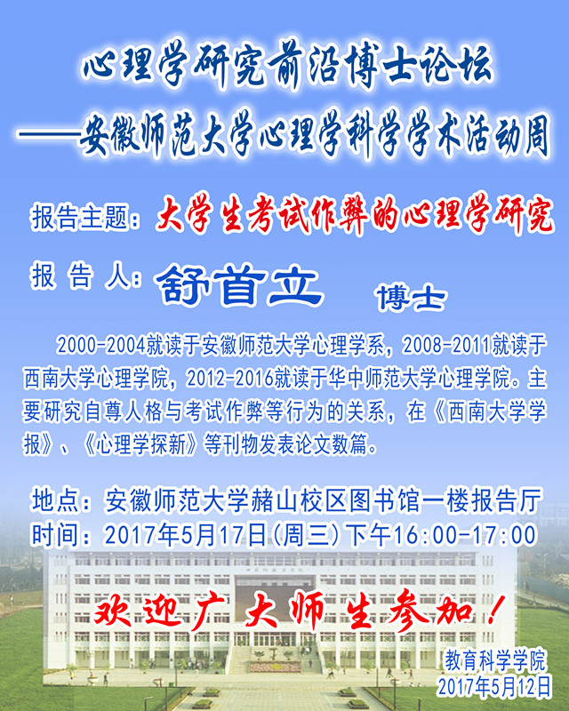 学术报告预告——舒首立博士学术报告