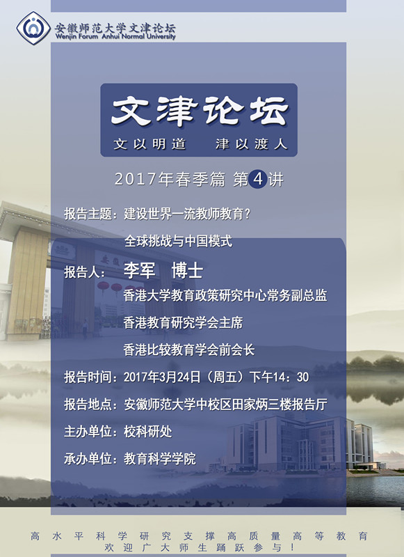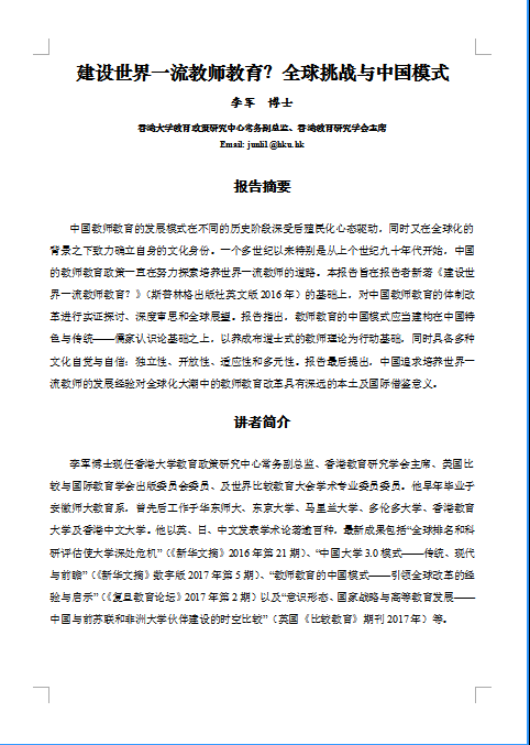 学术报告预告——香港大学教育政策研究中心常务副总监李军博士学术报告