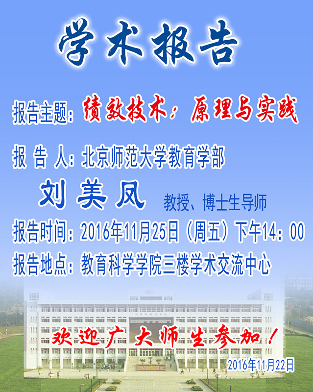 教育科学学院学术报告预告——北京师范大学教育学部刘美凤教授学术报告
