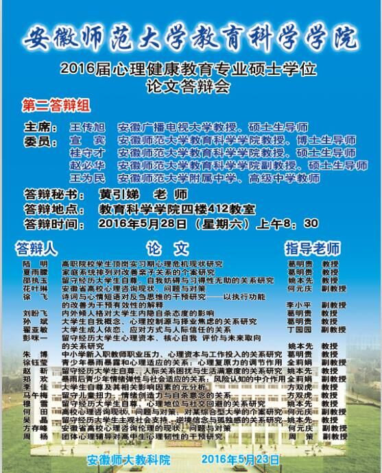 【研究生论文答辩】2016届心理健康教育专业第二组硕士学位论文答辩会