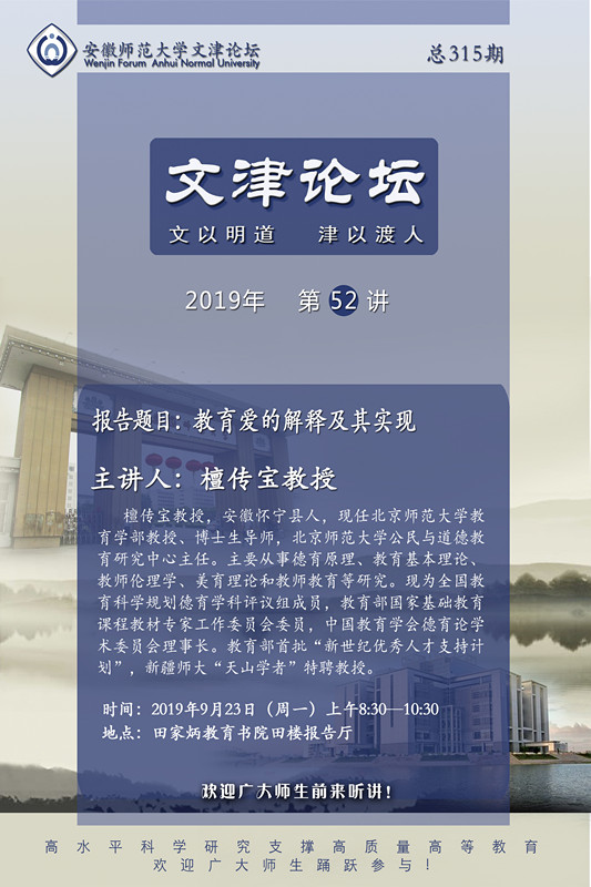 教育科学学院学术报告预告——北京师范大学檀传宝教授报告
