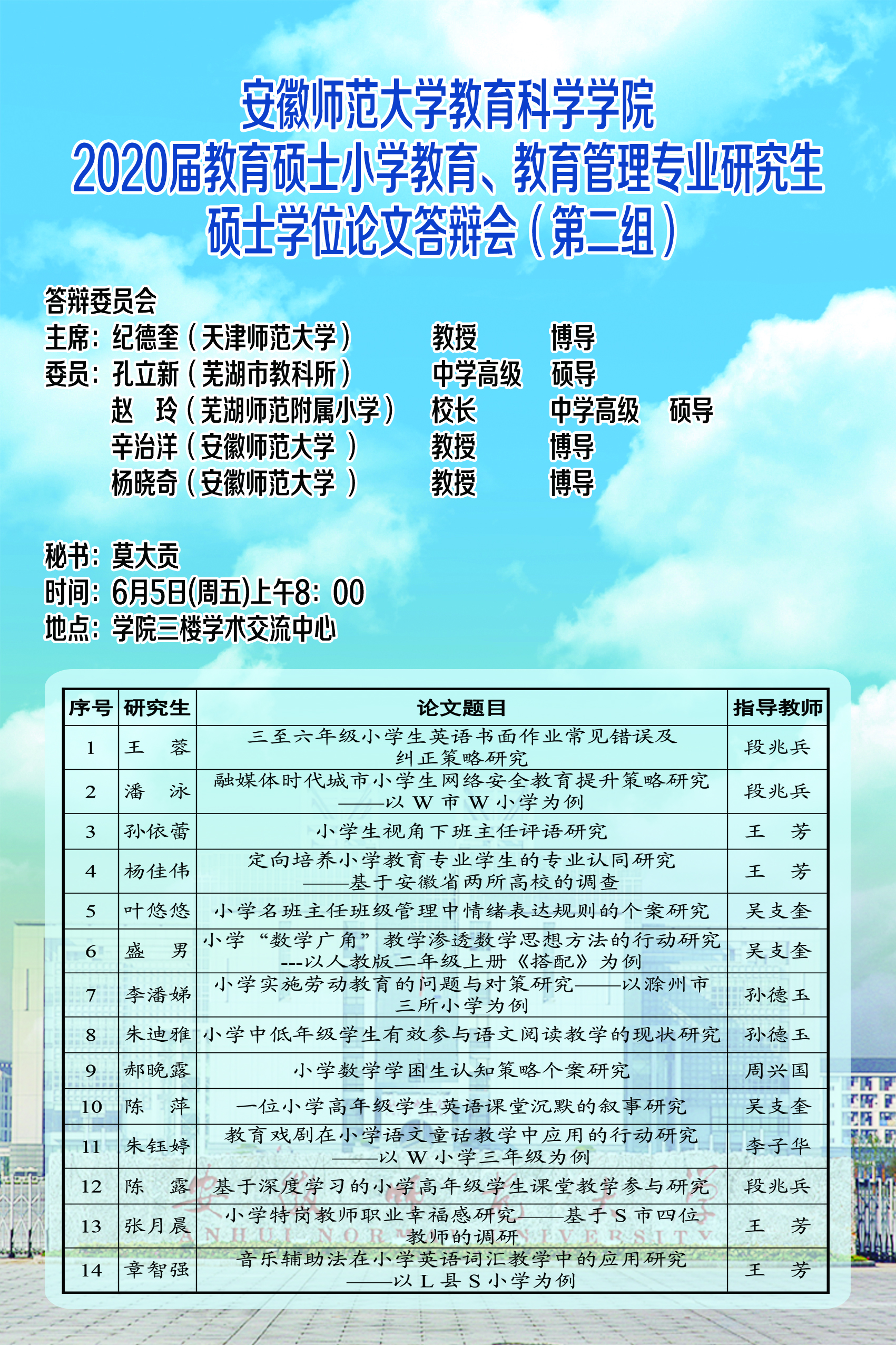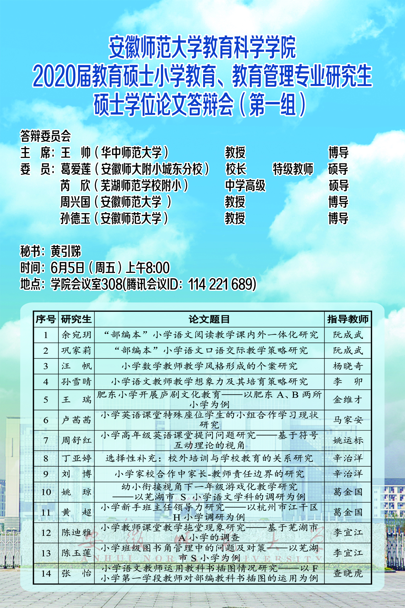 安徽royal皇家88平台2020届小学教育、教育管理专业硕士学位论文答辩会