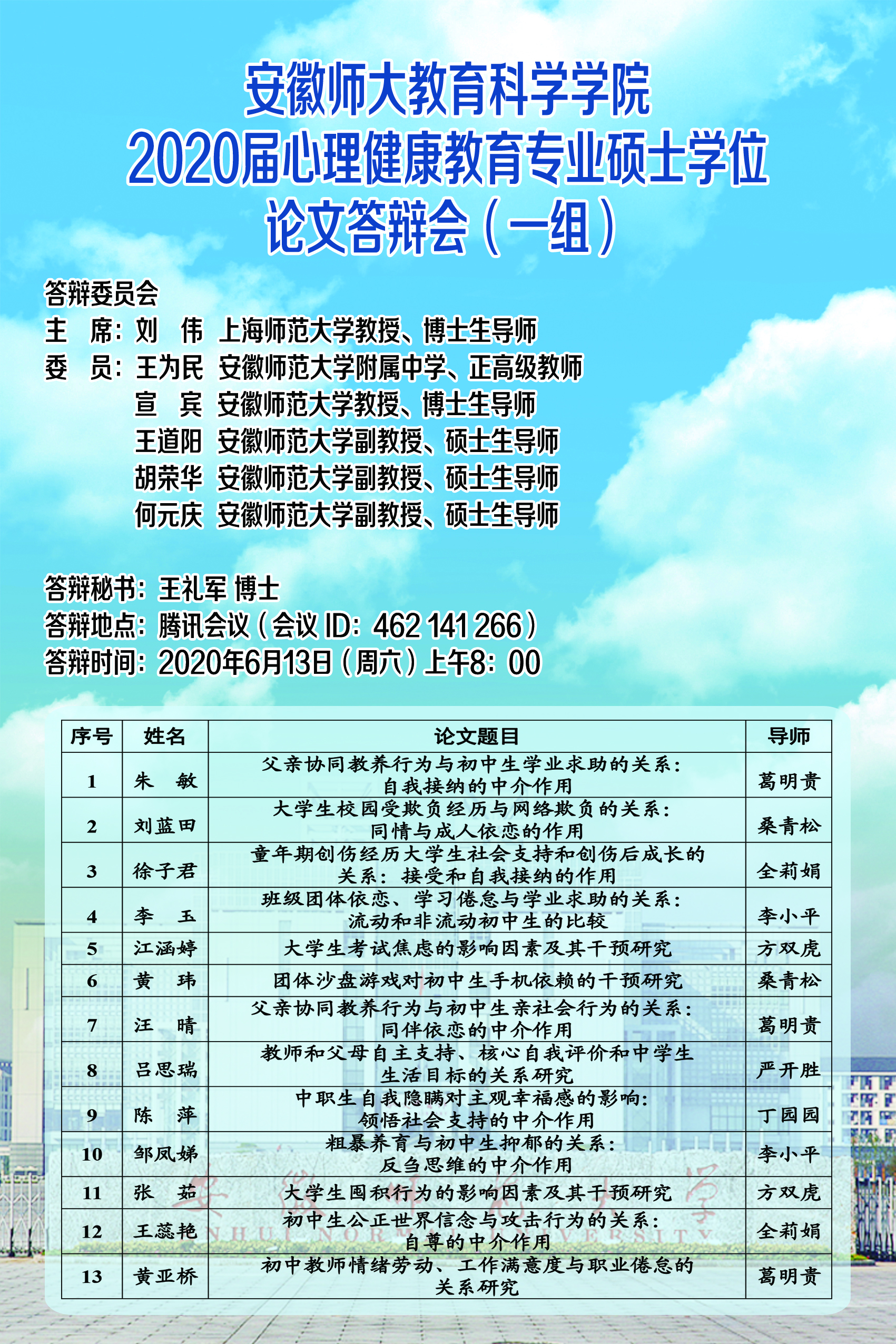 安徽royal皇家88平台2020届心理健康教育专业硕士学位论文答辩会