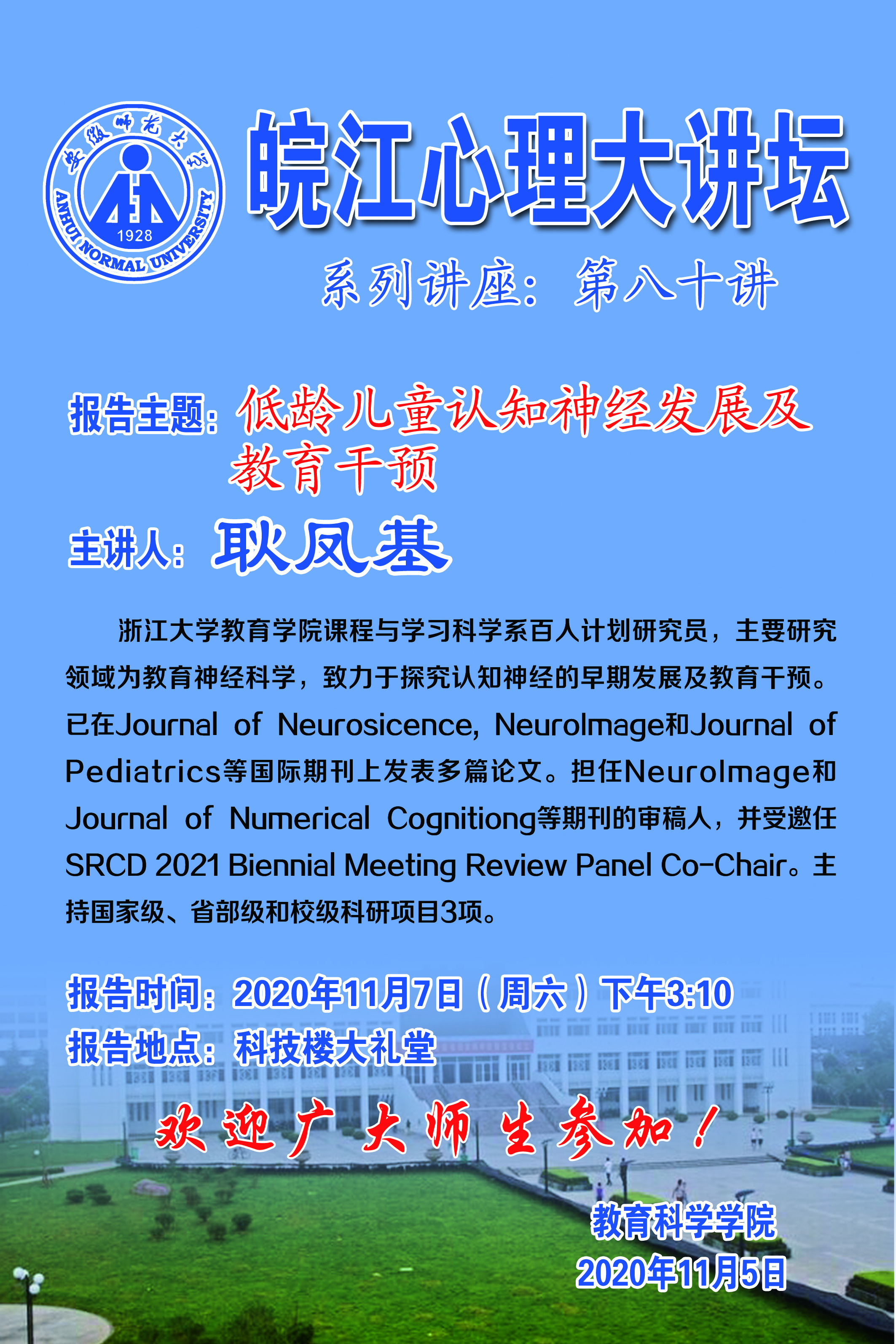 【学术预告】皖江心理大讲坛八十讲:低龄儿童认知神经发展及教育干预