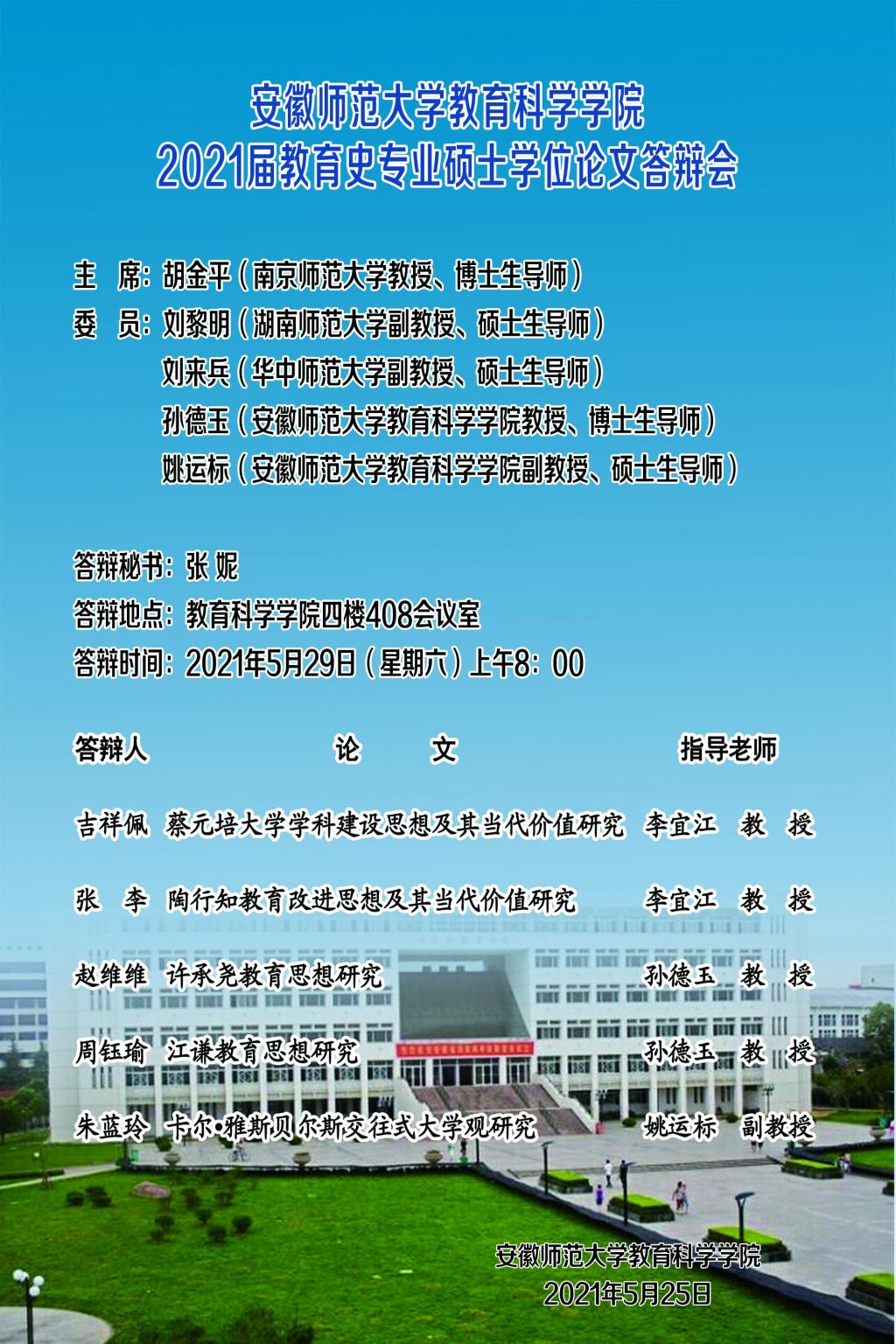 安徽royal皇家88平台2021届教育史专业硕士学位论文答辩会