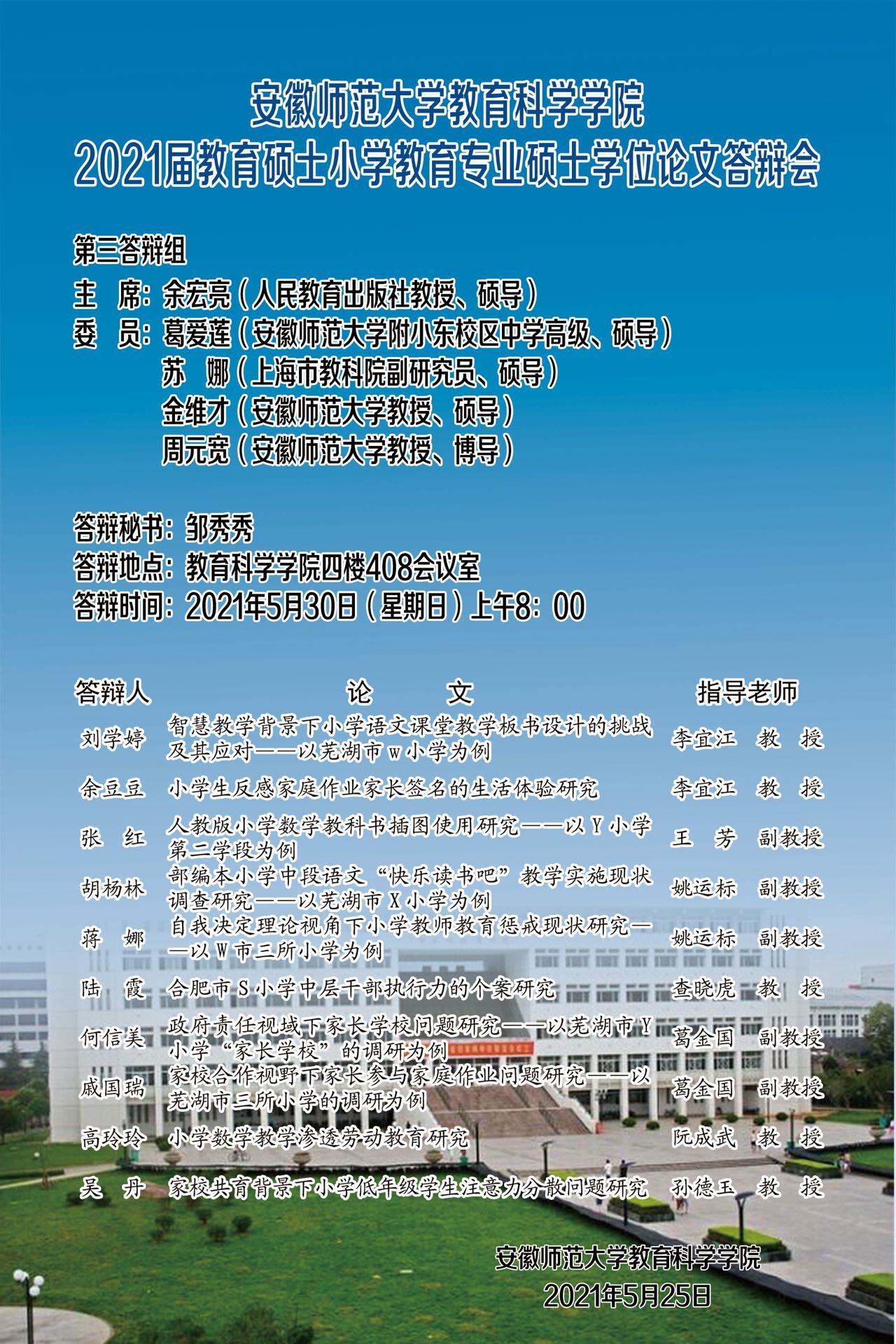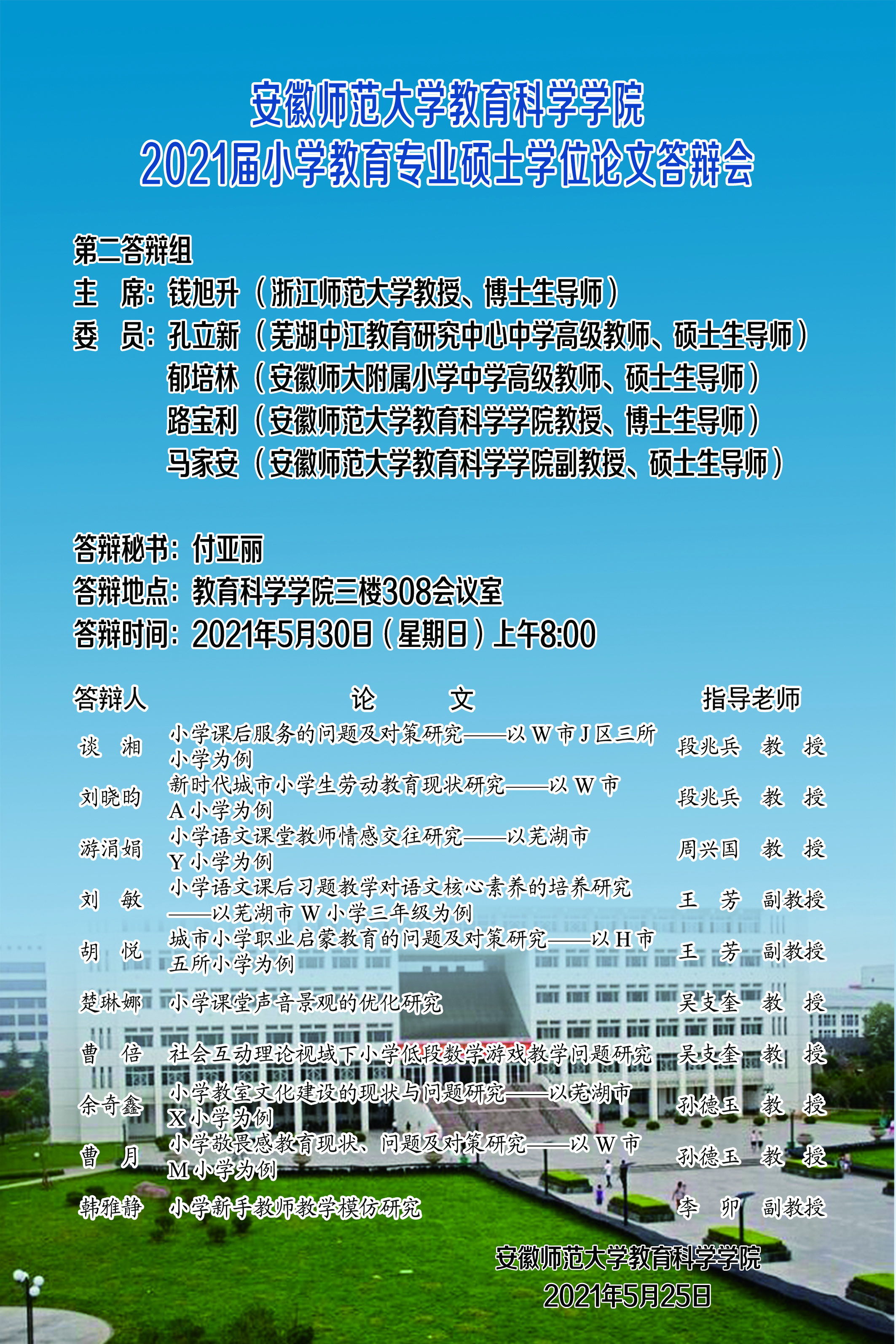 安徽royal皇家88平台2021届小学教育专业硕士学位论文答辩会