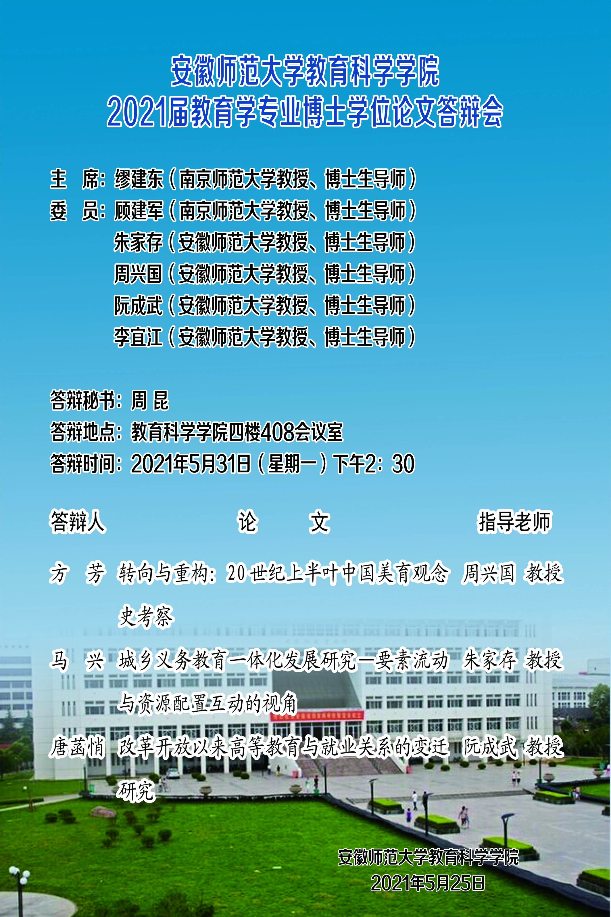 安徽royal皇家88平台2021届教育学专业博士学位论文答辩会