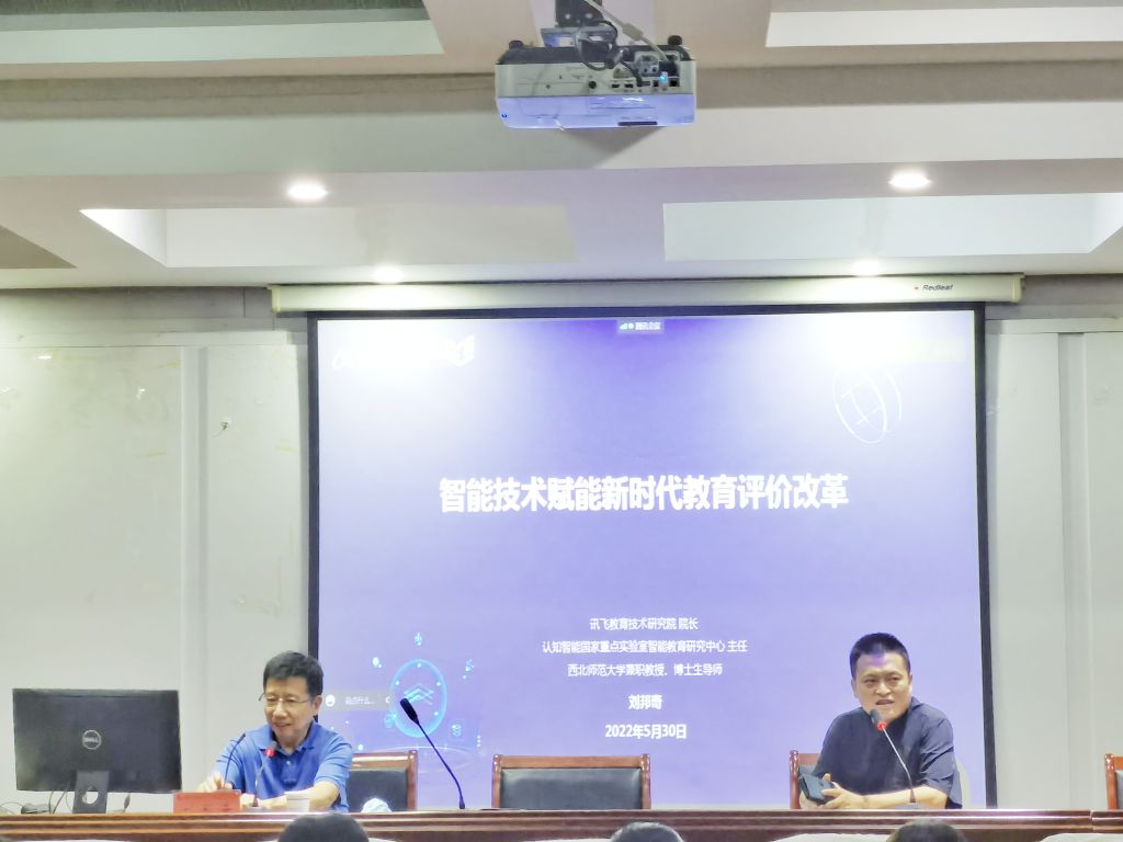 5月30日下午,讯飞教育技术研究院院长、认知智能国家重点实验室智能教育研究中心主任、西北师范大学博士生导师刘邦奇教授为我院师生作了题为《智能技术赋能新时代教育评价改革》的精彩报告。本次报告在教育科学学院学术交流中心和腾讯会议同时举行,由聂竹明教授主持,20级教育技术学研究生、21级现代教育技术研究生、19级教育技术学本科生参会。