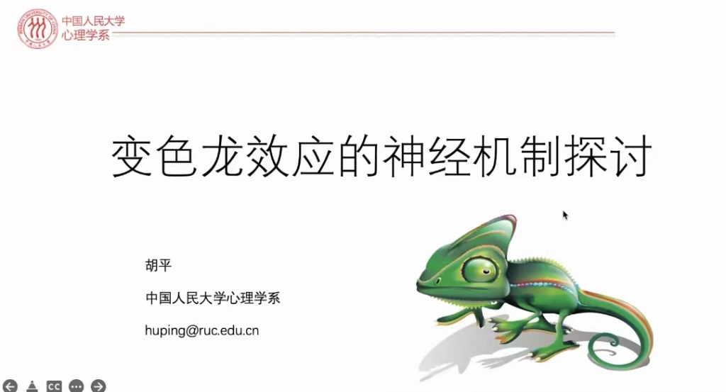 本次讲座共持续1个多小时,胡教授以深入浅出、理论结合实践的方式向在线师生呈现了一场生动有趣、内涵丰富的学术讲座。何为变色龙效应?胡教授以自然界中的变色龙为切入点,引出本次讲座重点——变色龙效应,又称无意识模仿,在人际交流中扮演着重要作用。为何会出现变色龙效应?胡教授立足中国特色文化背景,结合前人研究的成果与不足,阐明了研究团队的关注焦点——情绪感染和群际关系对变色龙效应神经机制的影响。并且胡教授简明扼要、层层递进地分析了团队前期所做的5个研究,向在线师生说明了目前所取得的成就。她表示在中国文化背景下,变色龙效应同样存在,且中国文化中特色的群际关系正是变色龙效应的重要促进因素之一。变色龙效应的优势在哪?胡教授表示变色龙效应可以促进个体理解他人行为、改善人际关系、使个体更受欢迎及改变对方行为等等。