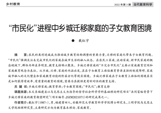 “市民化”进程中乡城迁移家庭的子女教育困境