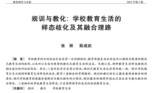 规训与教化:学校教育生活的样态歧化及其融合理路