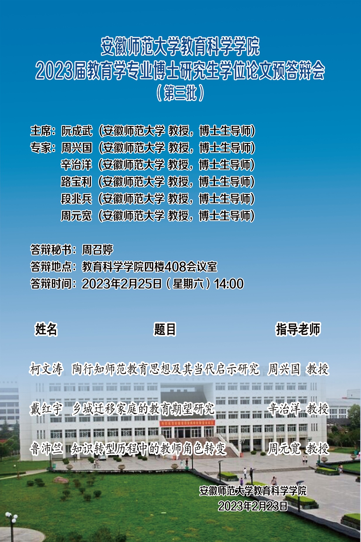 安徽royal皇家88平台2023届教育学专业博士研究生学位论文预答辩会(第三批)