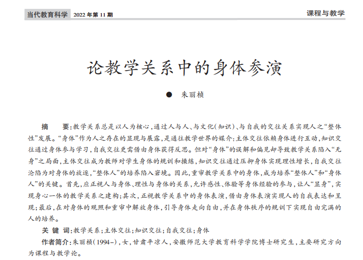 编者按:将持续推介安徽royal皇家88平台研究生近期在主要学术刊物上发表的部分学术成果,以促进学界同仁积极健康的学术交流、对话与批评。