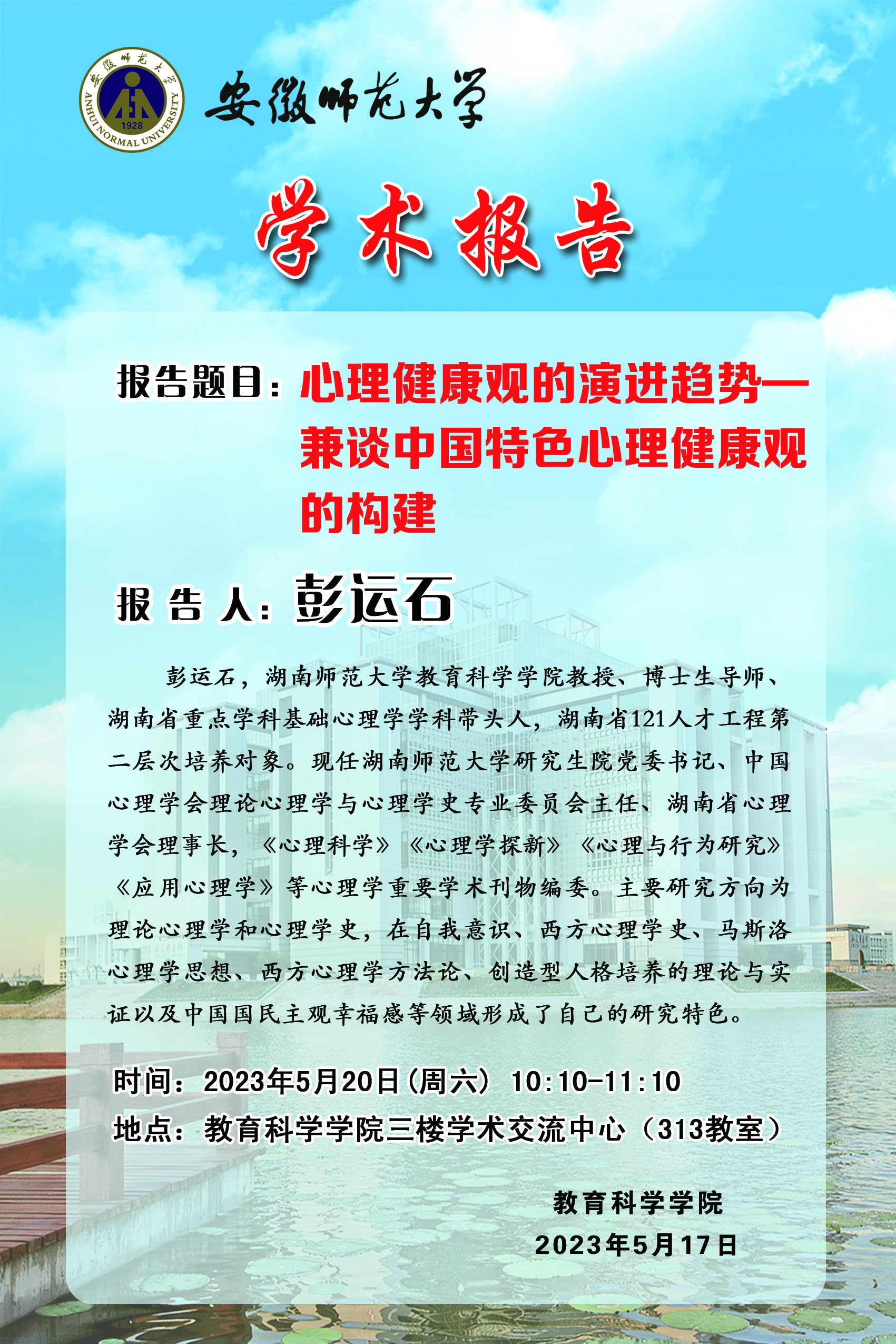 【学术预告】彭运石:心理健康观的演进趋势—兼谈中国特色心理健康观的构建