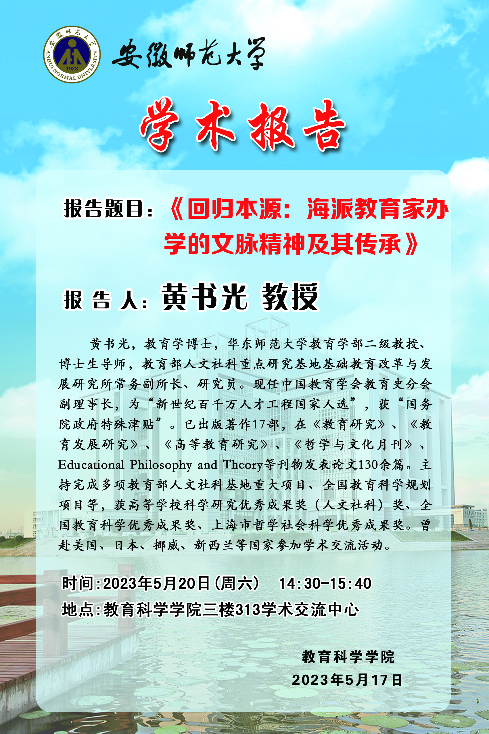 【学术预告】黄书光:回归本源:海派教育家办学的文脉精神及其传承