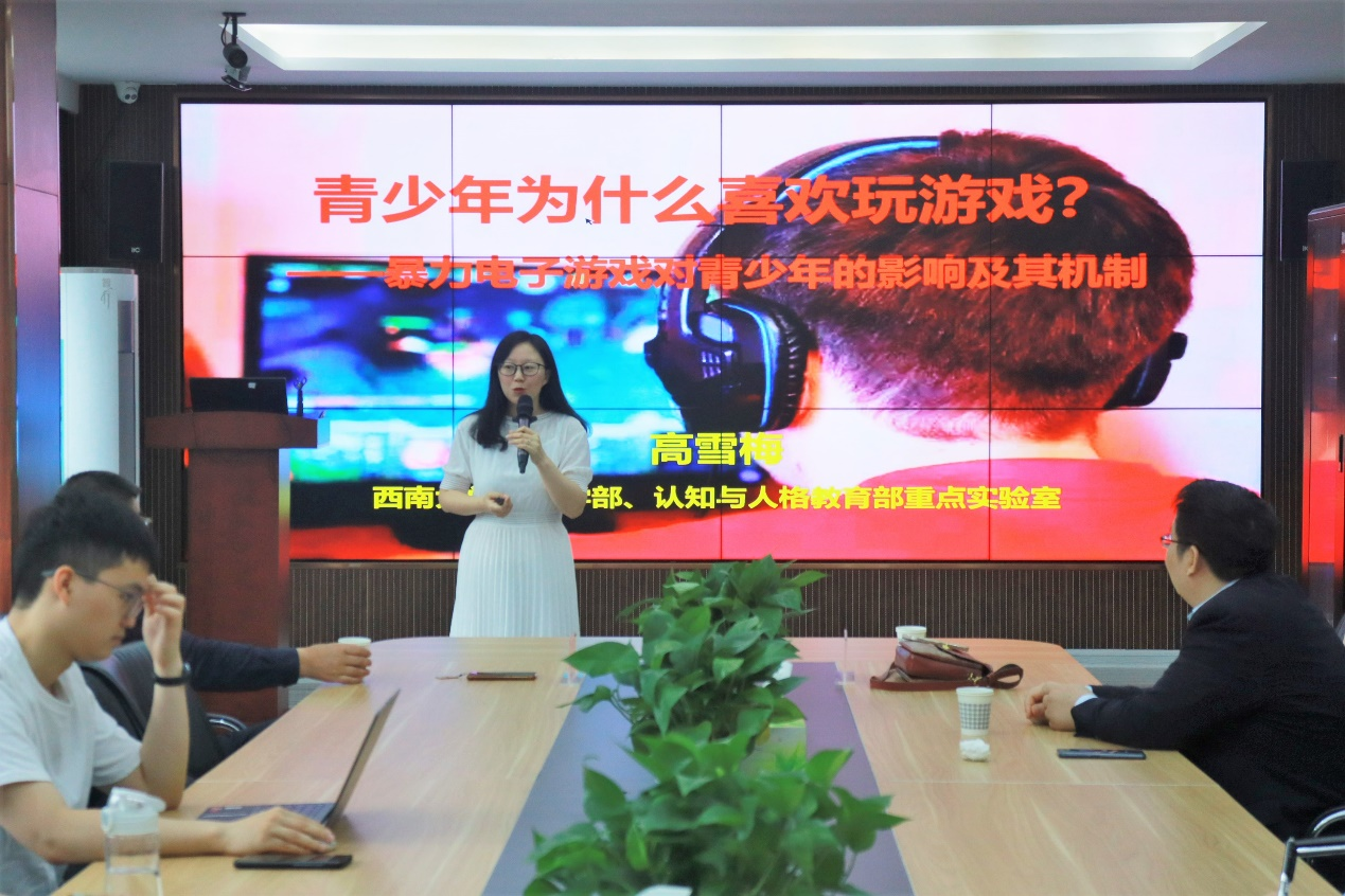 5月27日上午,“皖江心理大讲坛”(第一百零一讲)在物理楼209会议室如期开讲。西南大学高雪梅教授受邀为我院师生做主题为《青少年为什么喜欢玩游戏?——暴力电子游戏对青少年的影响及其机制》的讲座。本场讲座由葛明贵教授主持,部分心理学教师和2022级心理学专业研究生到场学习聆听。