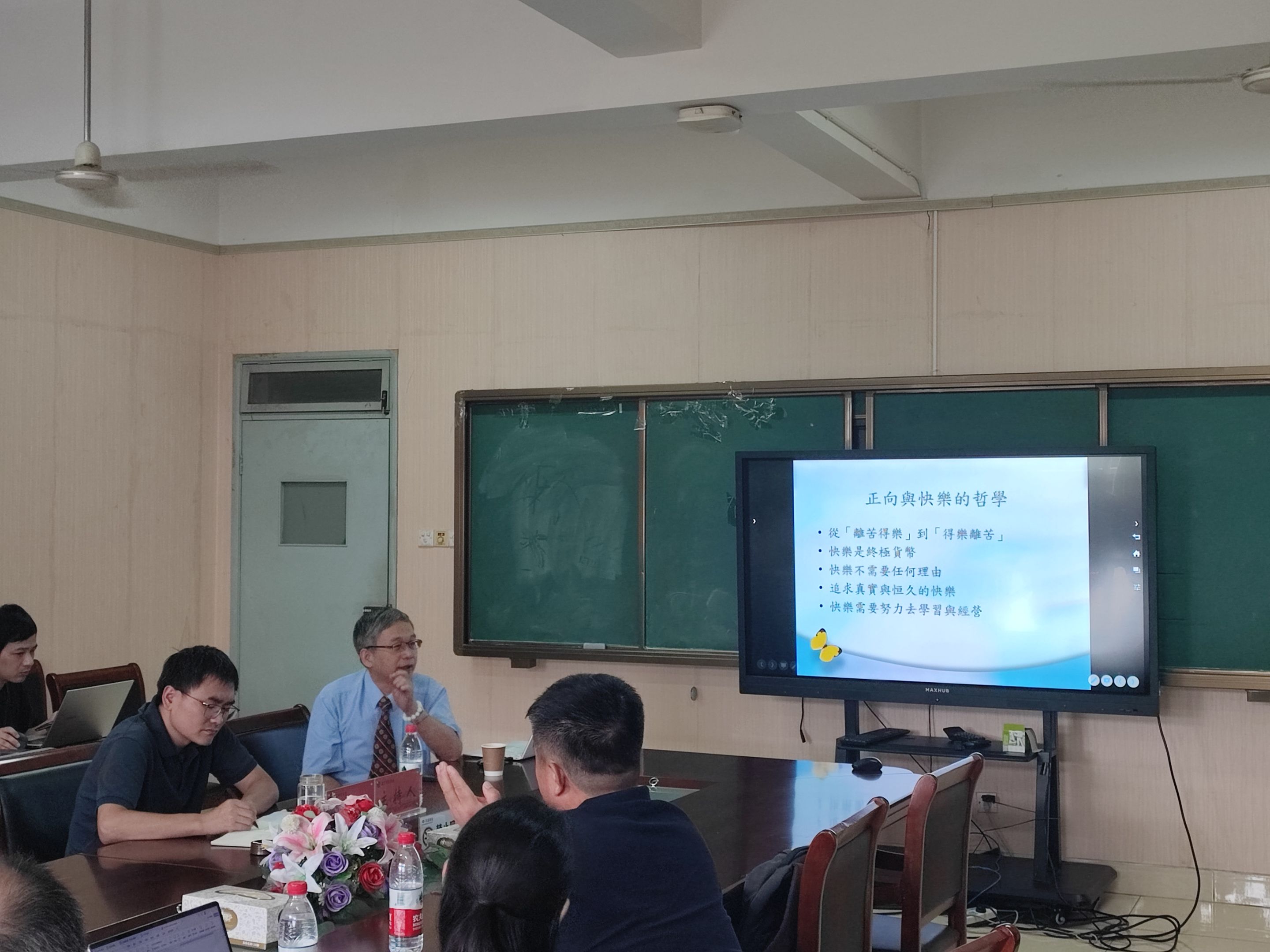 讲座伊始,陈教授指出“人人生而平等,每个人都有生存、自由和追求幸福的权利,教育的核心目标是让每个人都充满幸福感”。随后,陈教授以台湾学生为例,讲述了青少年学生心理健康现状并提出教育应注重学生社会情绪素养的培育。接着,陈教授向大家提问“什么是快乐和幸福”,并提出“正向与快乐的哲学”。最后,陈教授为大家介绍了十二个有效的快乐方案:表达感恩、培养乐观心态、避免想太多与社会比较、行善、培养人际关系、发展因应策略、学会宽恕、增加心流体验、品味生活乐趣、设定及追求人生目标、培养灵性、照顾身心,以此来增进一生的幸福感。