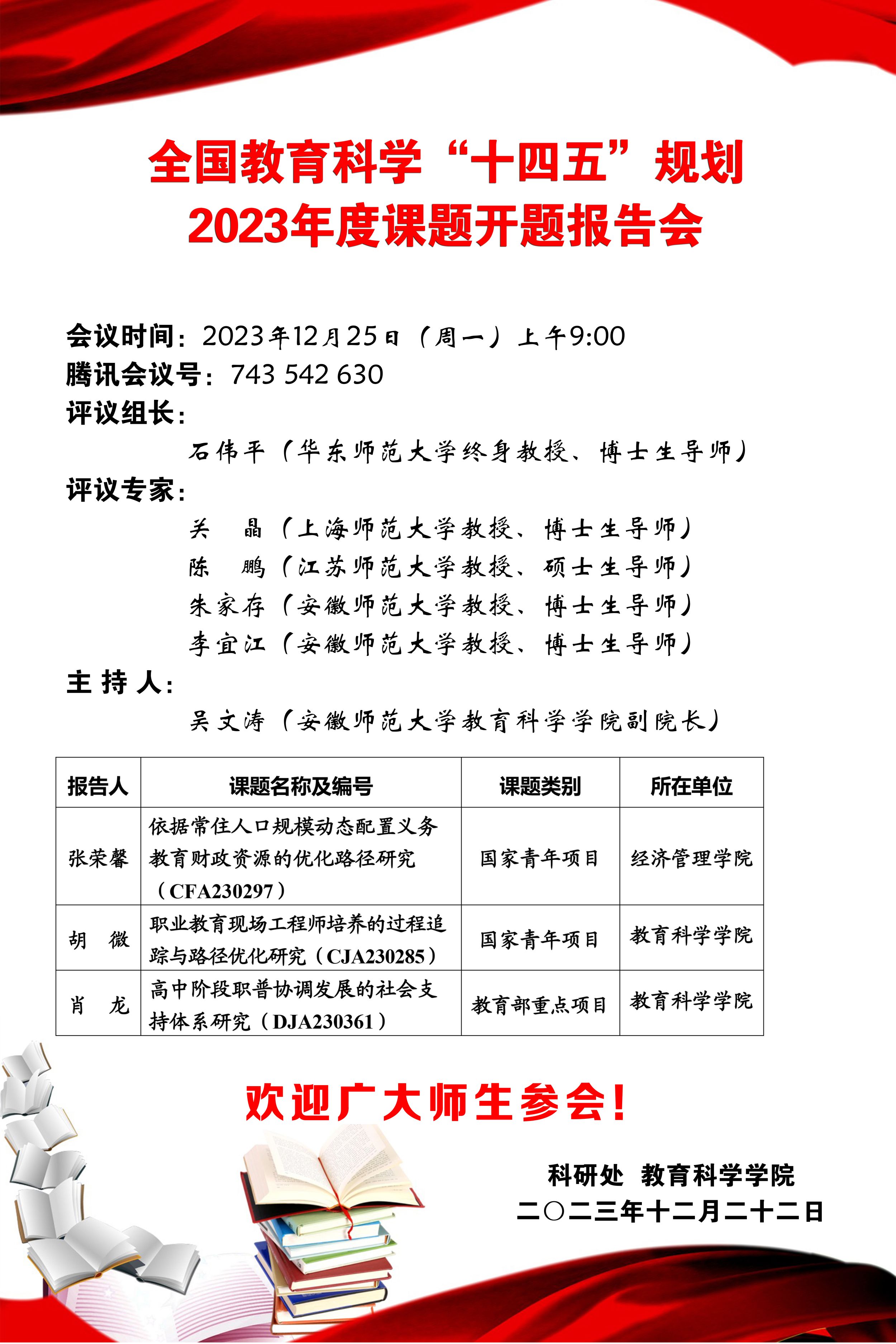 【学术预告】全国教育科学“十四五”规划2023年度课题开题报告会