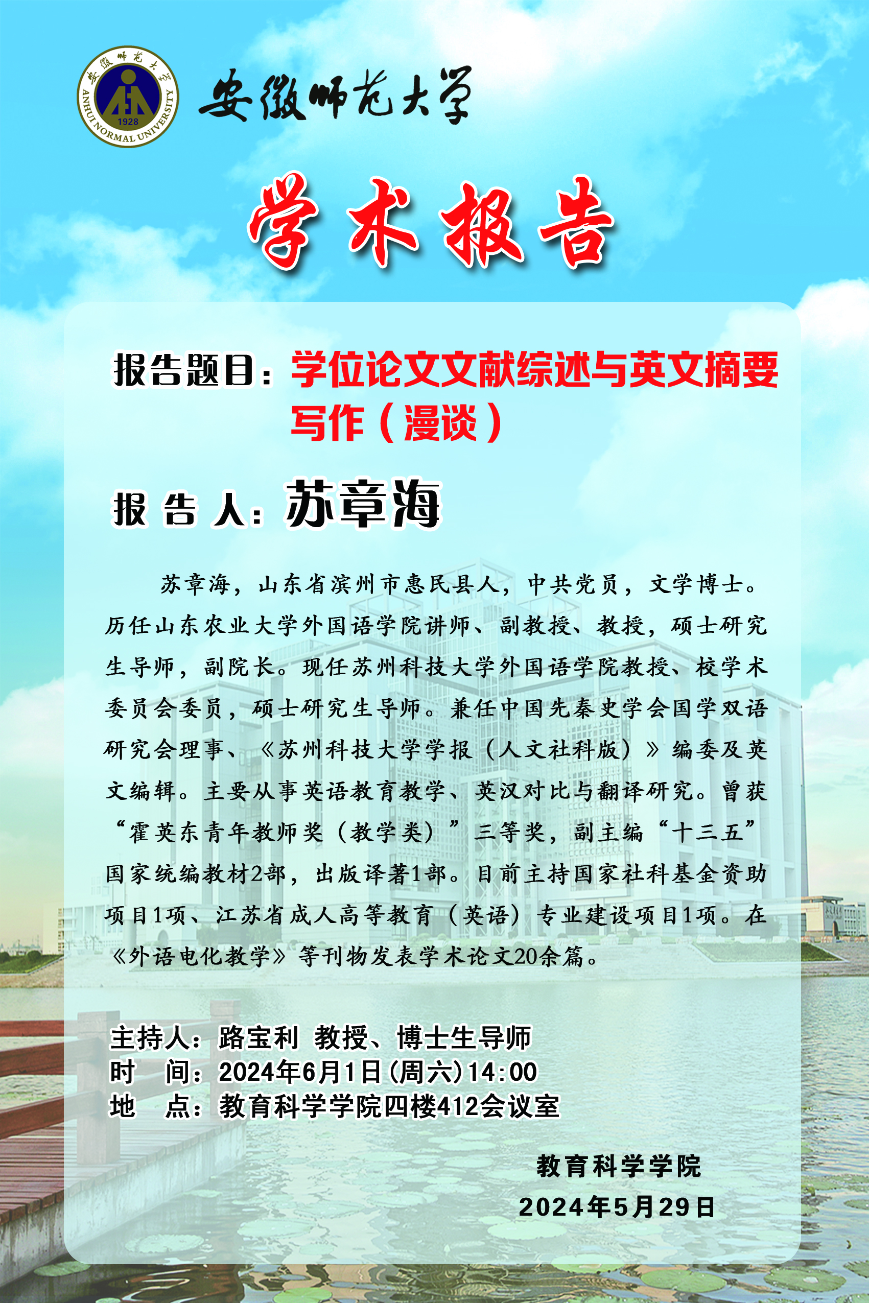 【学术预告】苏章海:学位论文文献综述与英文摘要写作(漫谈)