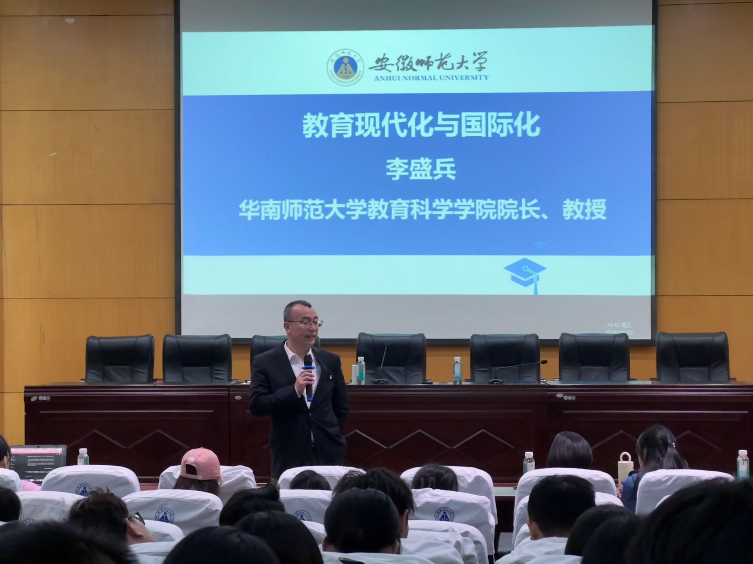 1023日下午,华南royal皇家88平台院长李盛兵教授为教科院师生带来《教育现代化与国际化》的学术报告。本次讲座由李宜江院长主持,学院部分教师、2023级和2024级教育学研究生及博士生到场学习。