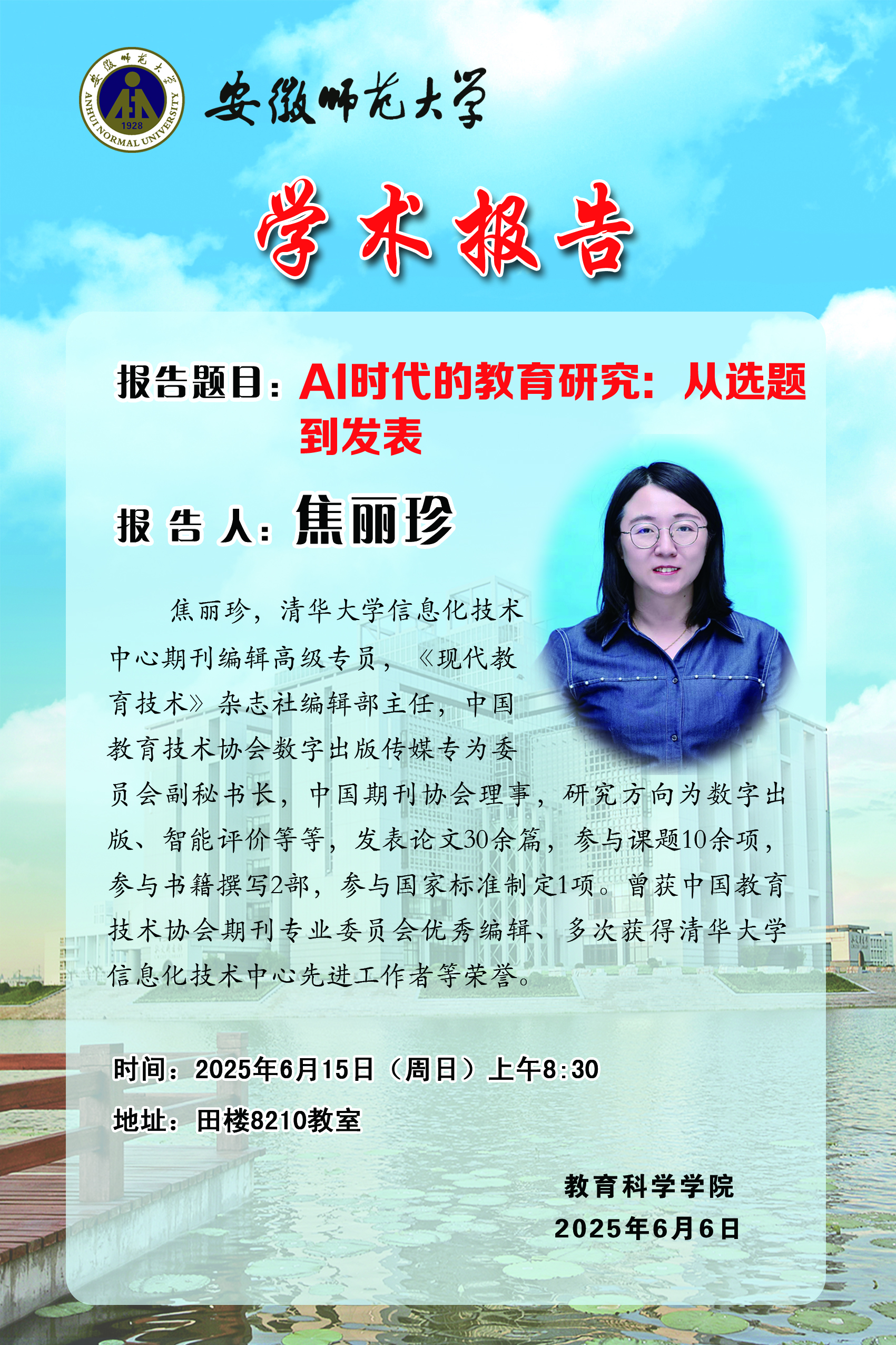 【学术预告】焦丽珍:AI时代的教育研究:从选题到发表
