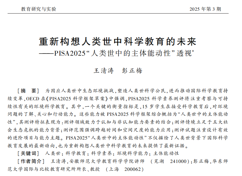 王清涛等:重新构想人类世中科学教育的未来——PISA2025“人类世中的主体能动性”透视