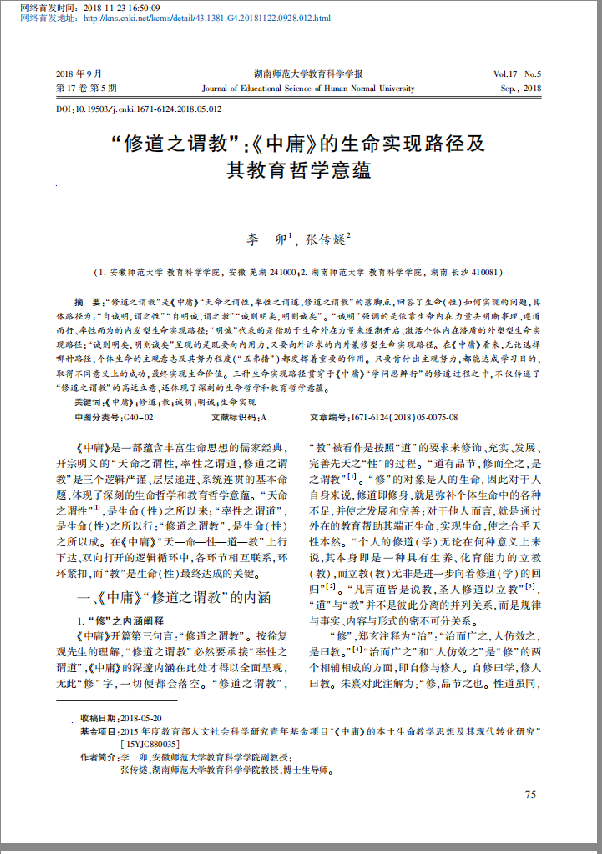 李卯,张传燧:“修道之谓教”:《中庸》的生命实现路径及其教育哲学意蕴